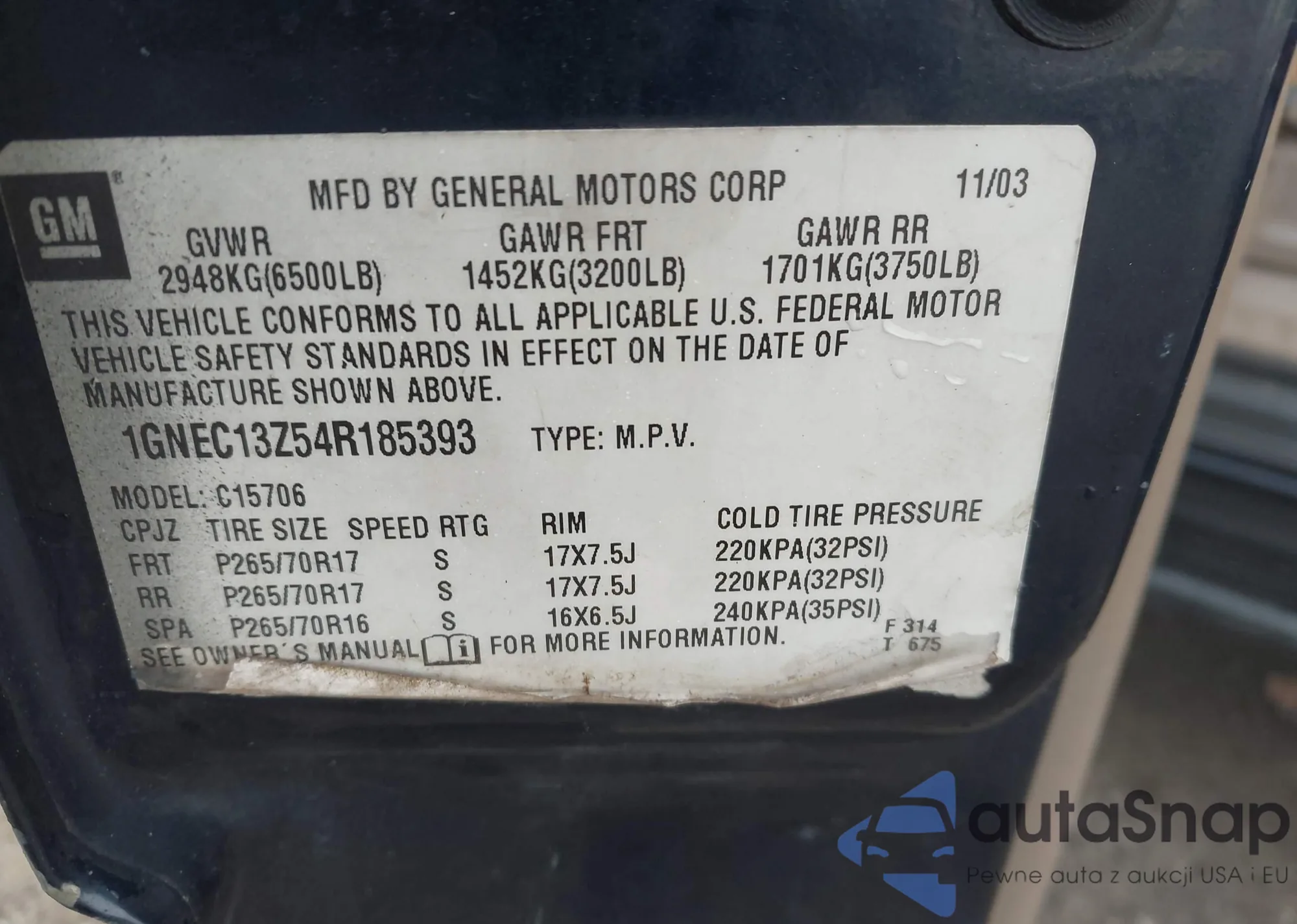 VIN: 1GNEC13Z54R185393