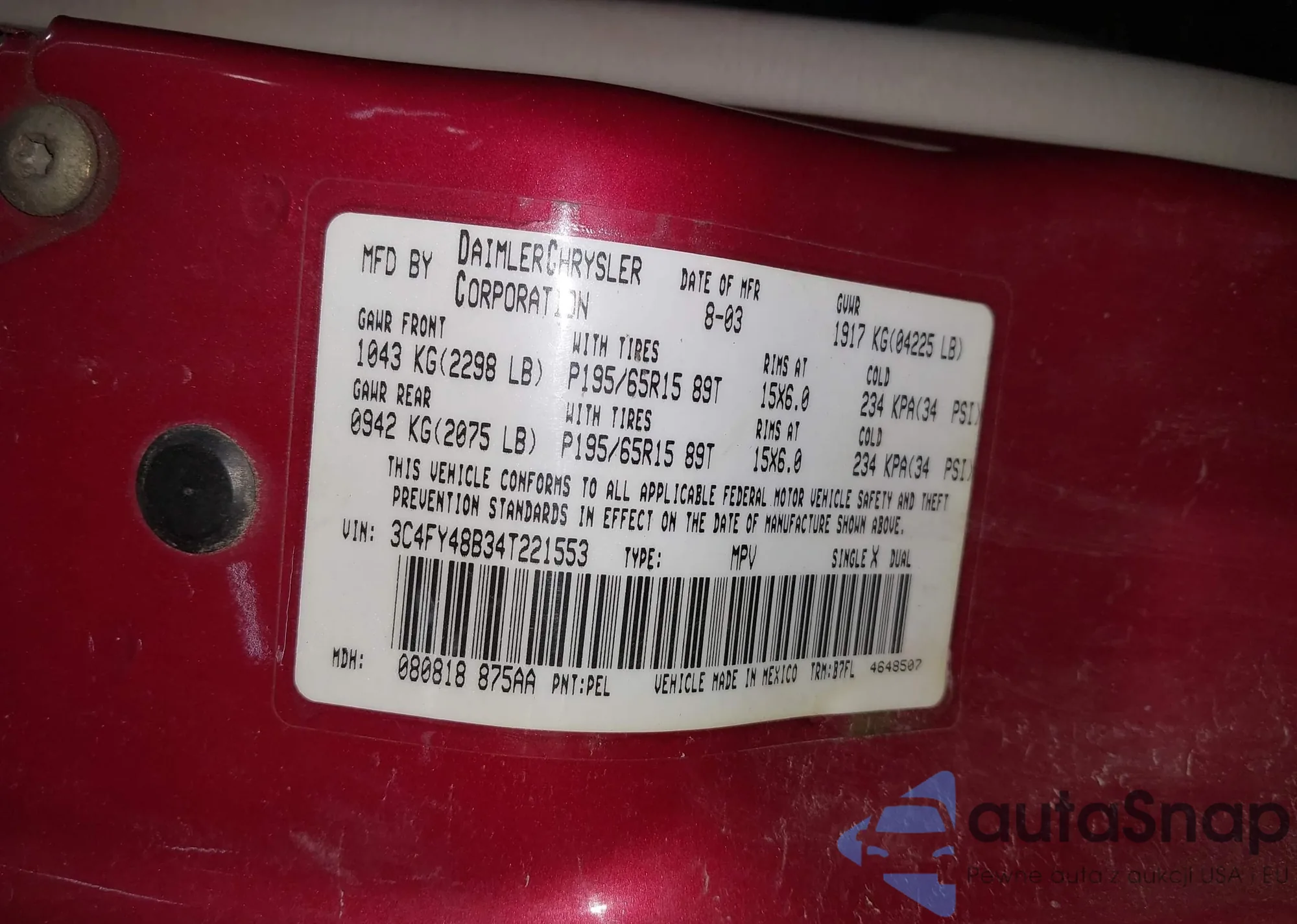 VIN: 3C4FY48B34T221553