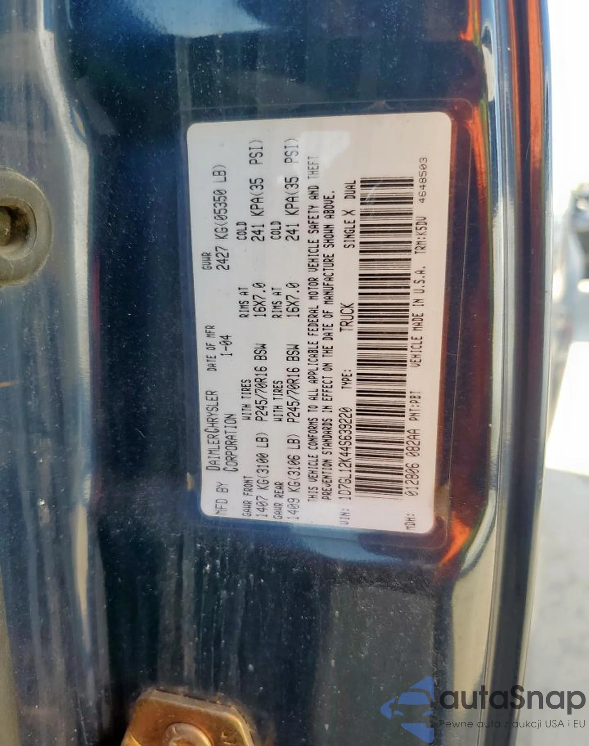 VIN: 1D7GL12K44S639220
