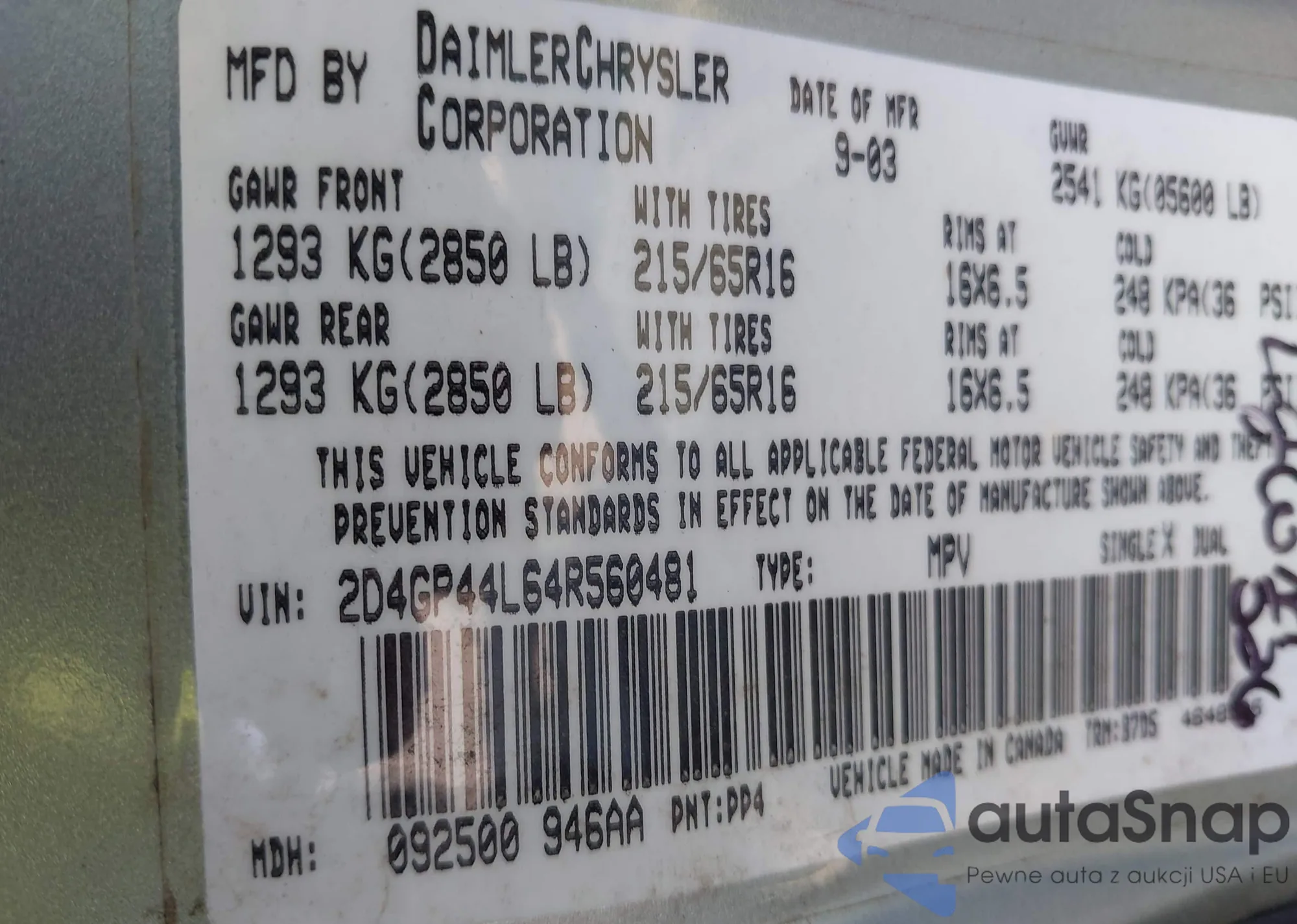 VIN: 2D4GP44L64R560481