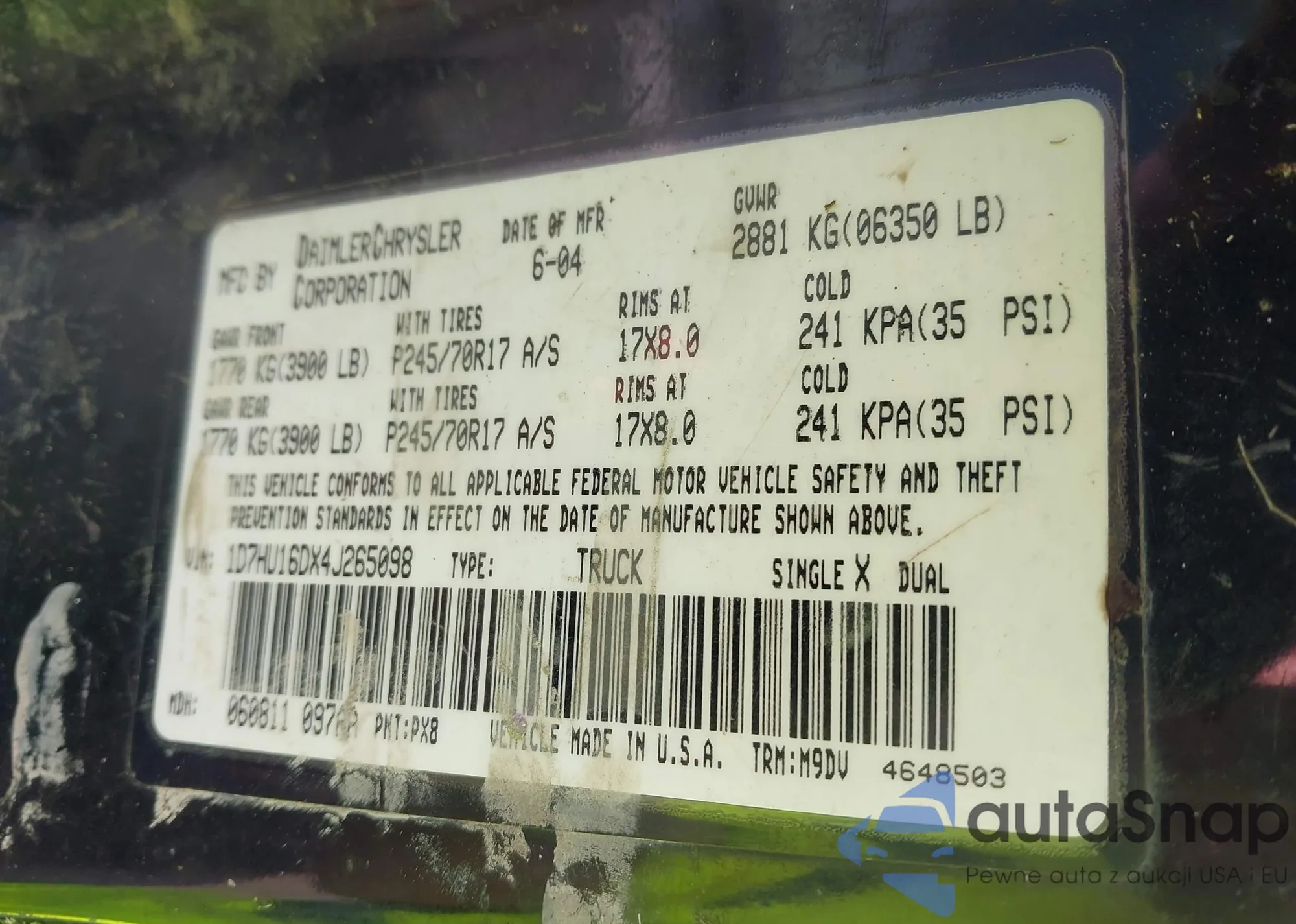 VIN: 1D7HU16DX4J265098