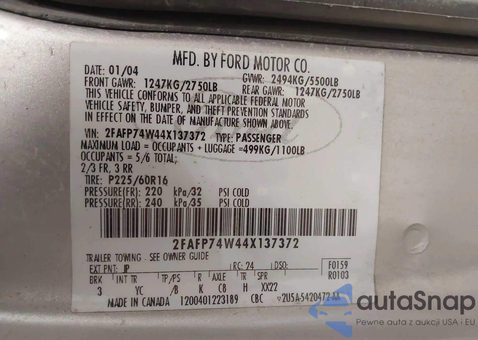 VIN: 2FAFP74W44X137372