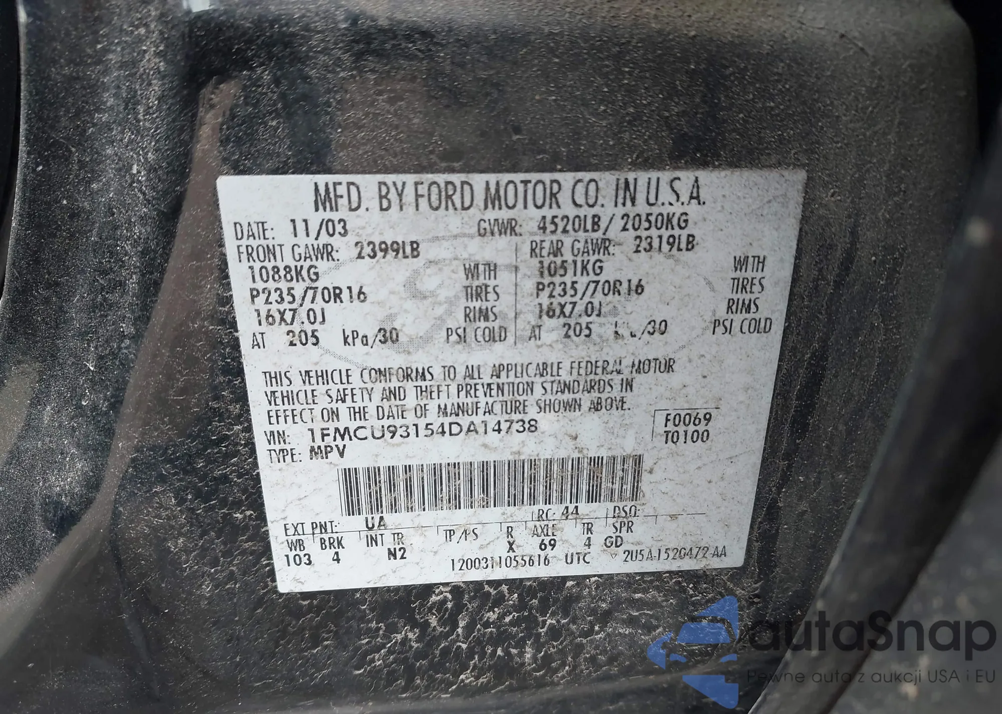 VIN: 1FMCU93154DA14738