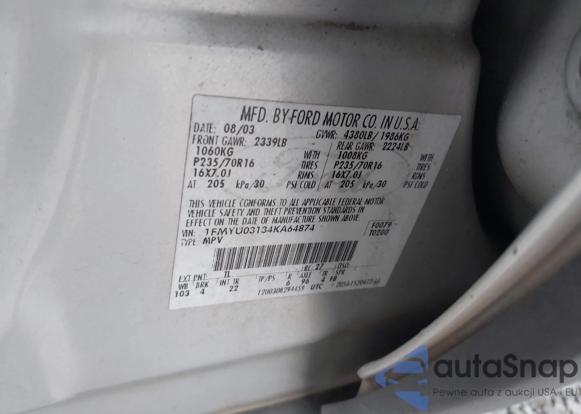 VIN: 1FMYU03134KA64874