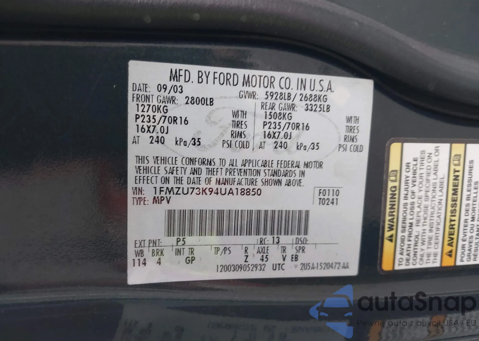 VIN: 1FMZU73K94UA18850