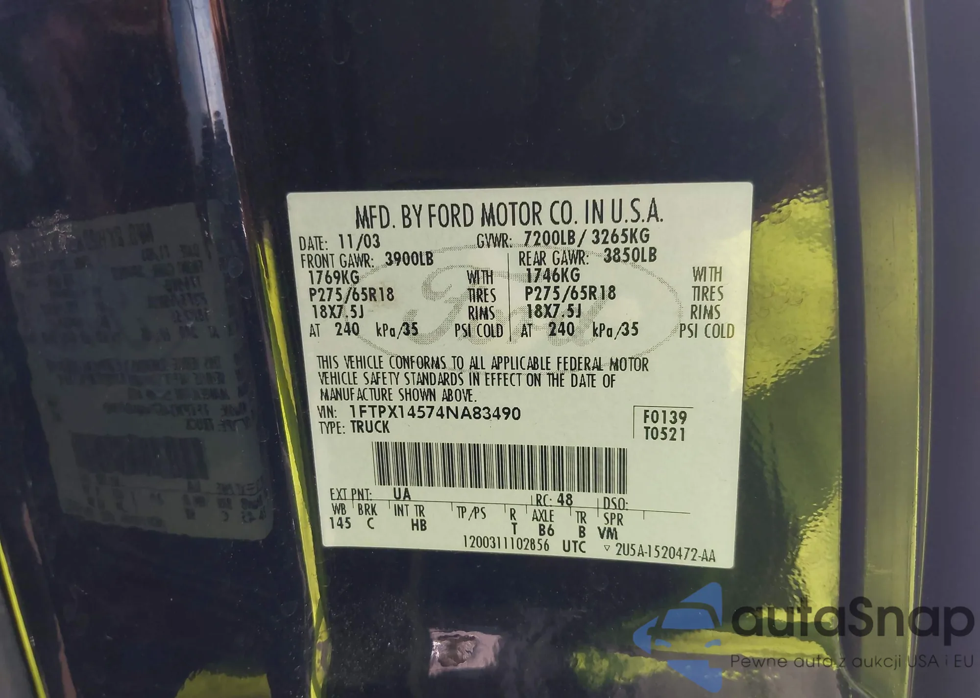 VIN: 1FTPX14574NA83490