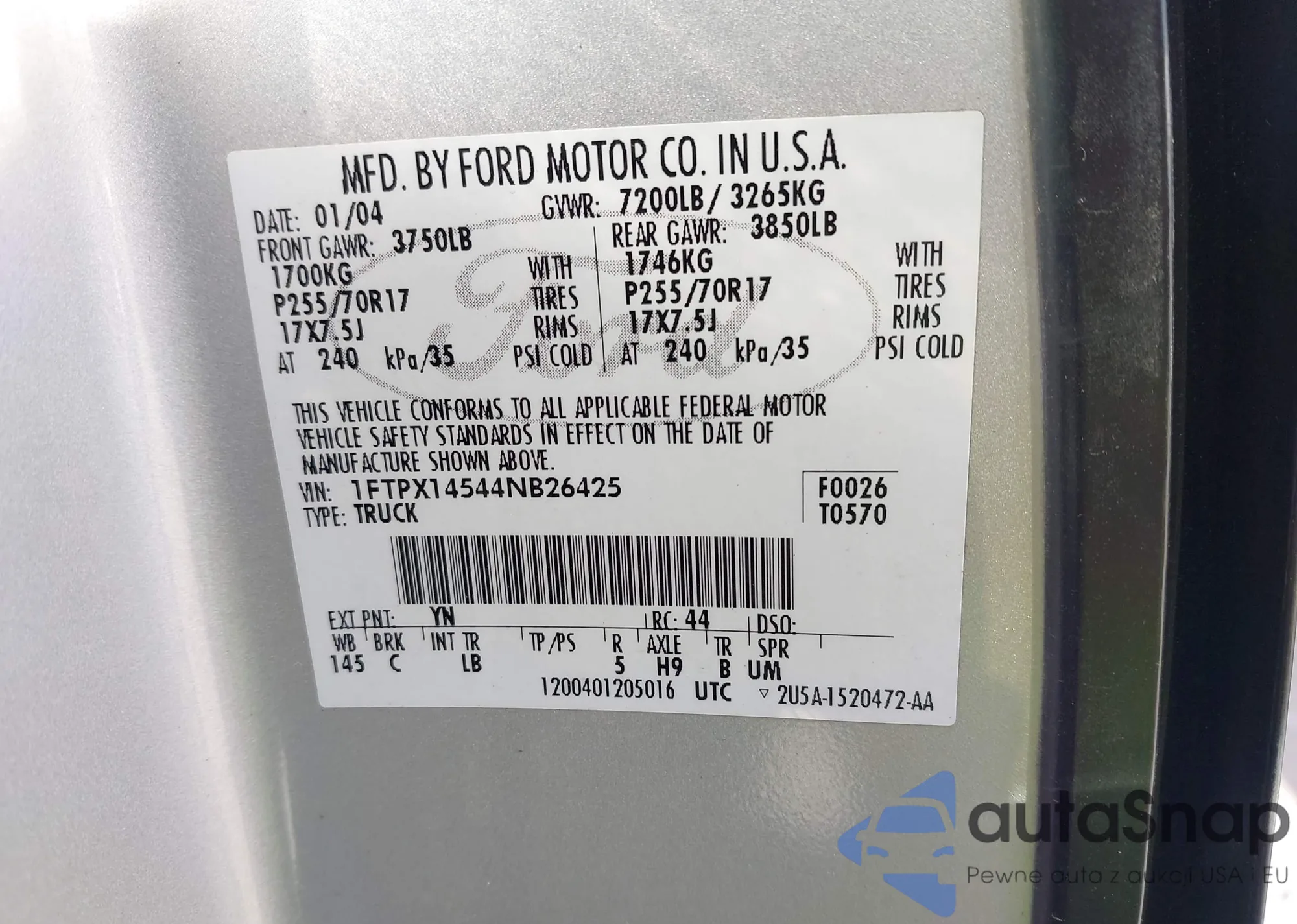 VIN: 1FTPX14544NB26425