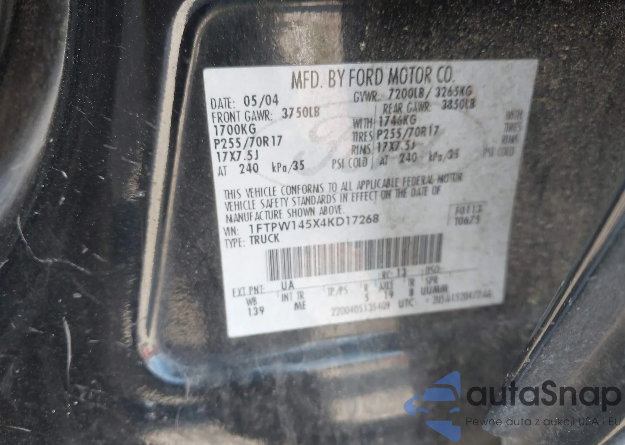 VIN: 1FTPW145X4KD17268
