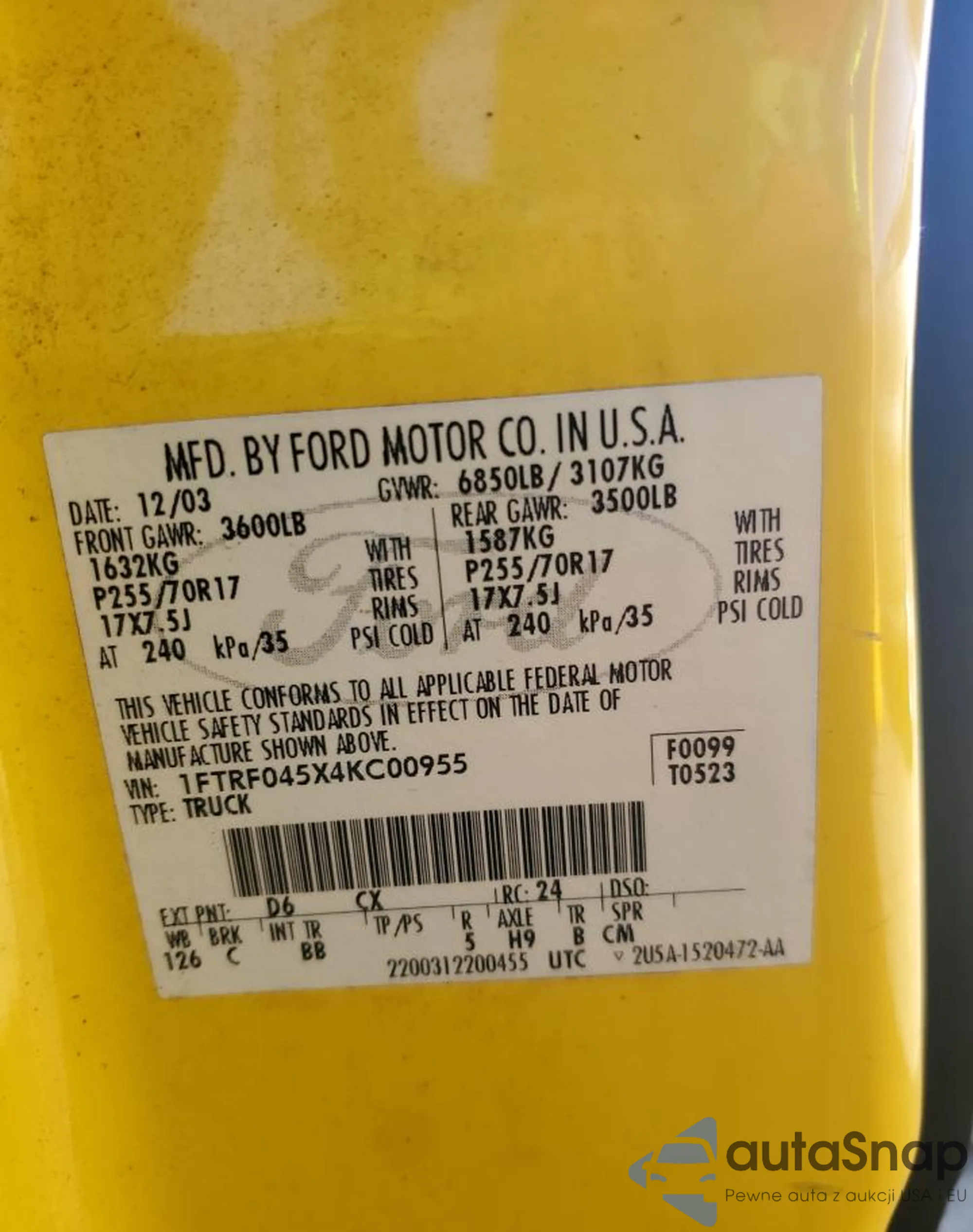 Ford F-150 2004 – Vehicle History (Sold at COPART)