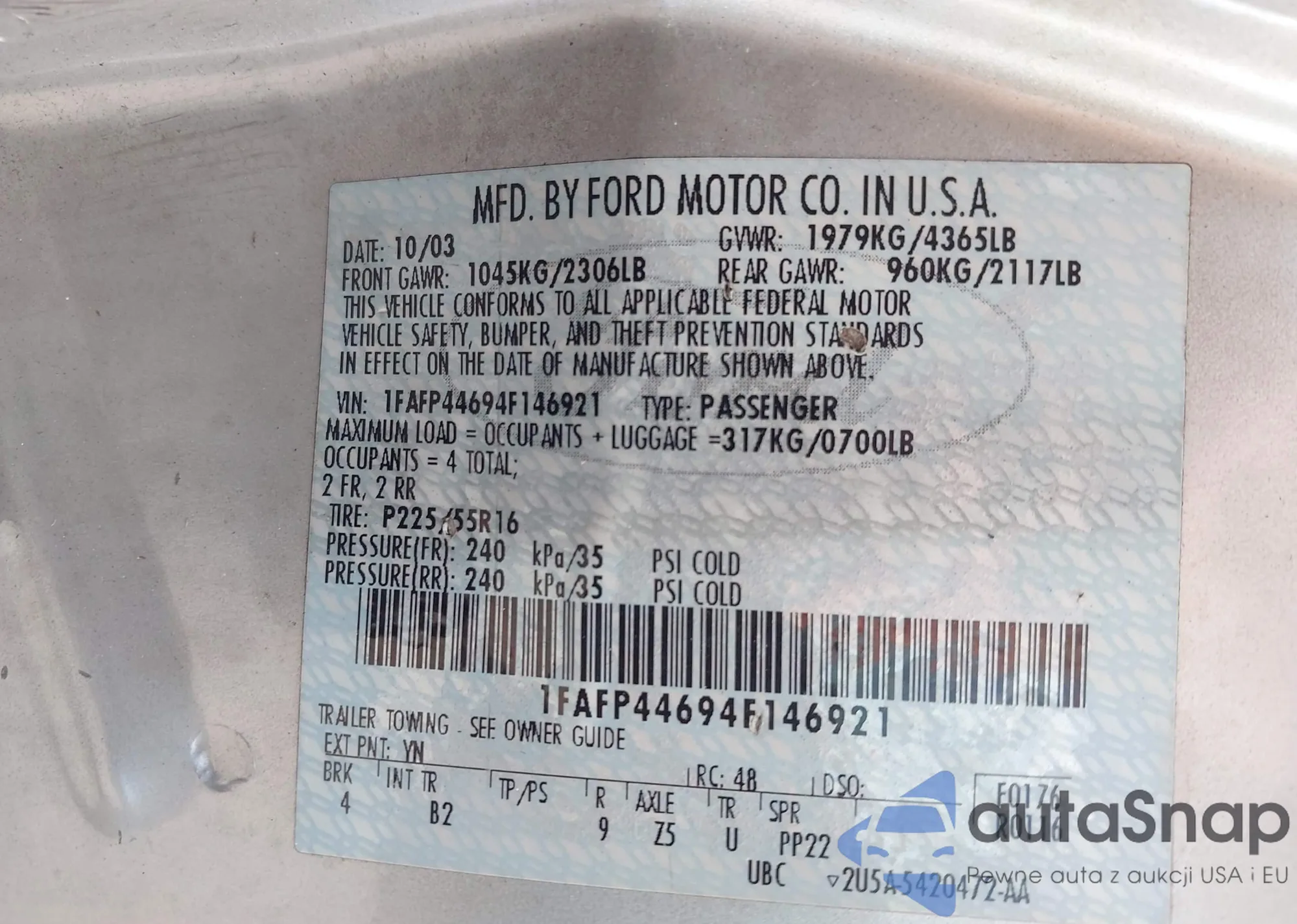 The car Ford Mustang 2004 (VIN 1FAFP44694F146921) is sold by an unverified seller. We recommend checking the Carfax report and confirming registration possibilities before purchase.