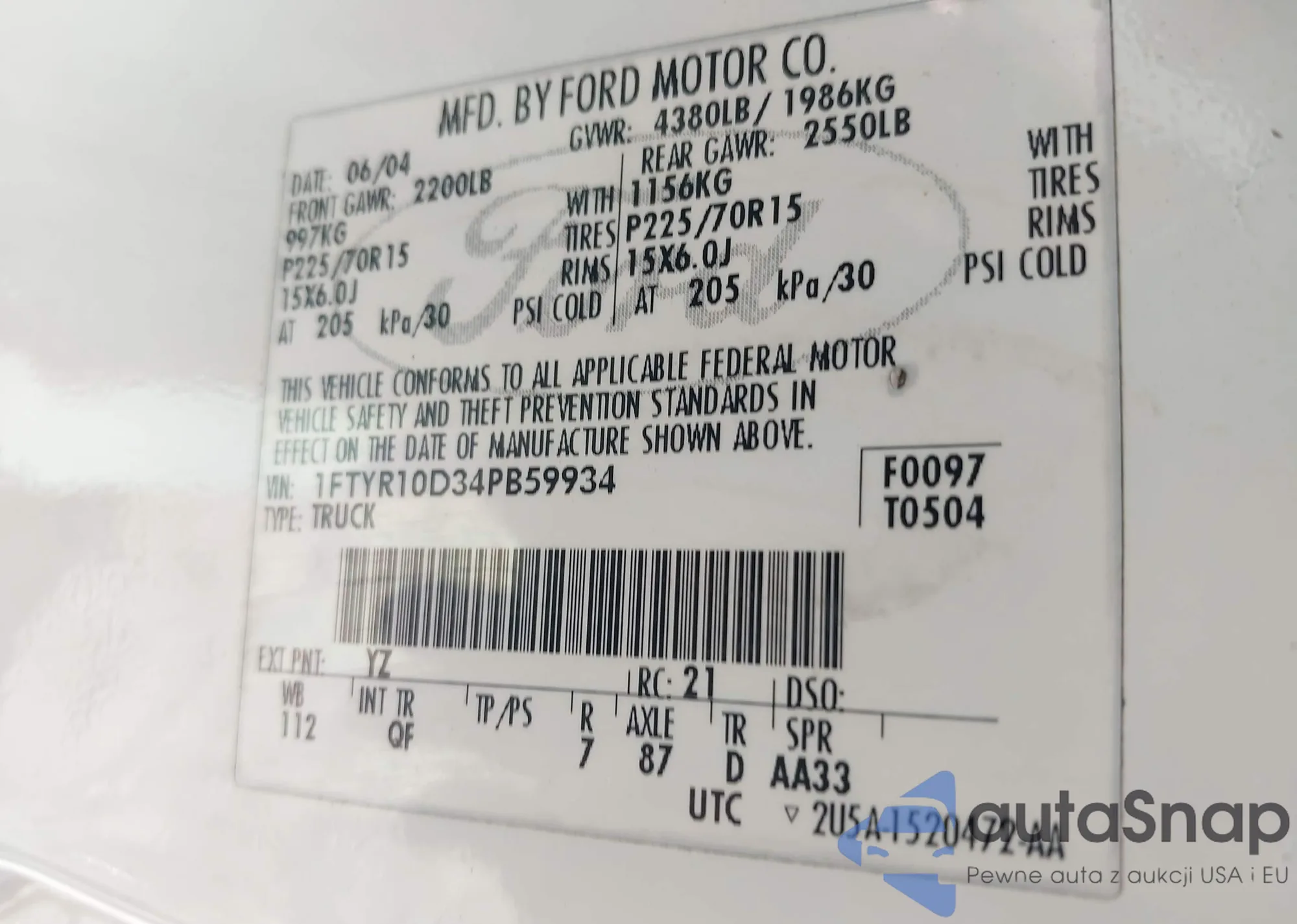 VIN: 1FTYR10D34PB59934
