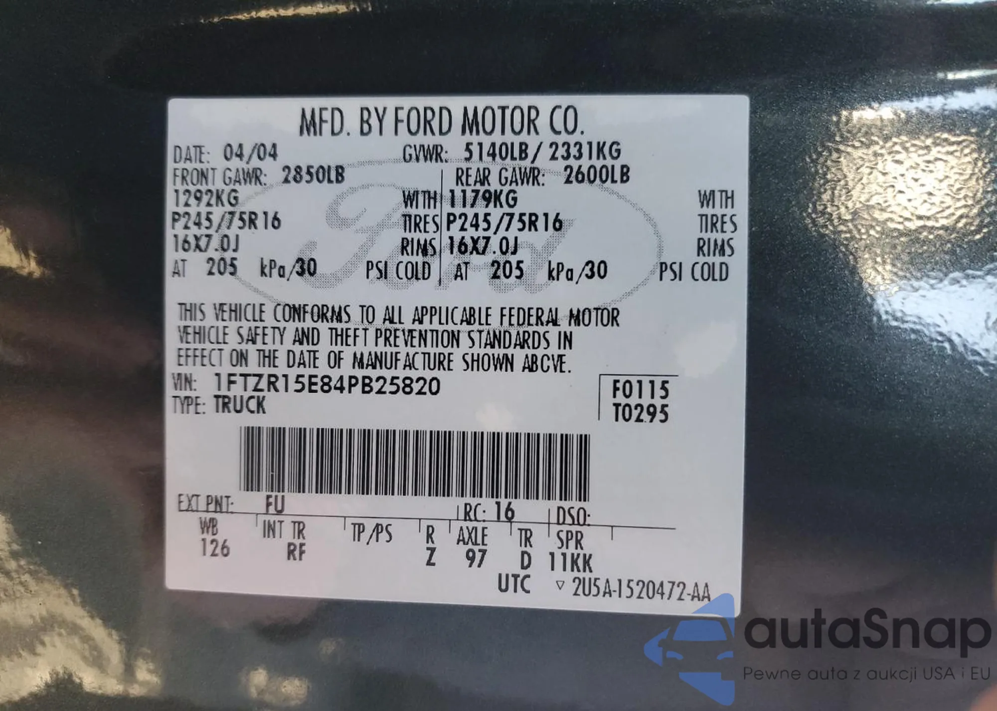 VIN: 1FTZR15E84PB25820