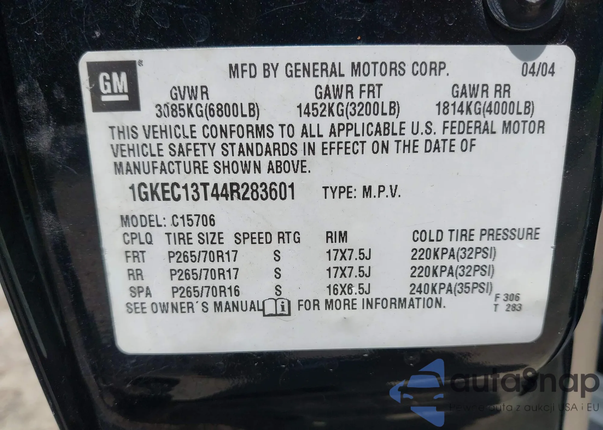 VIN: 1GKEC13T44R283601
