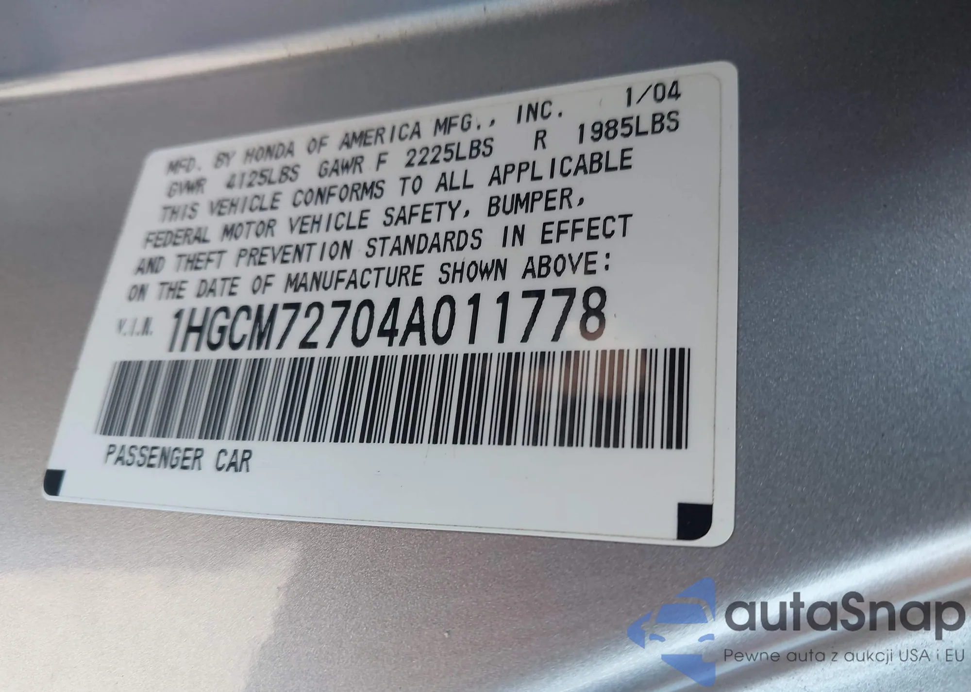 VIN: 1HGCM72704A011778
