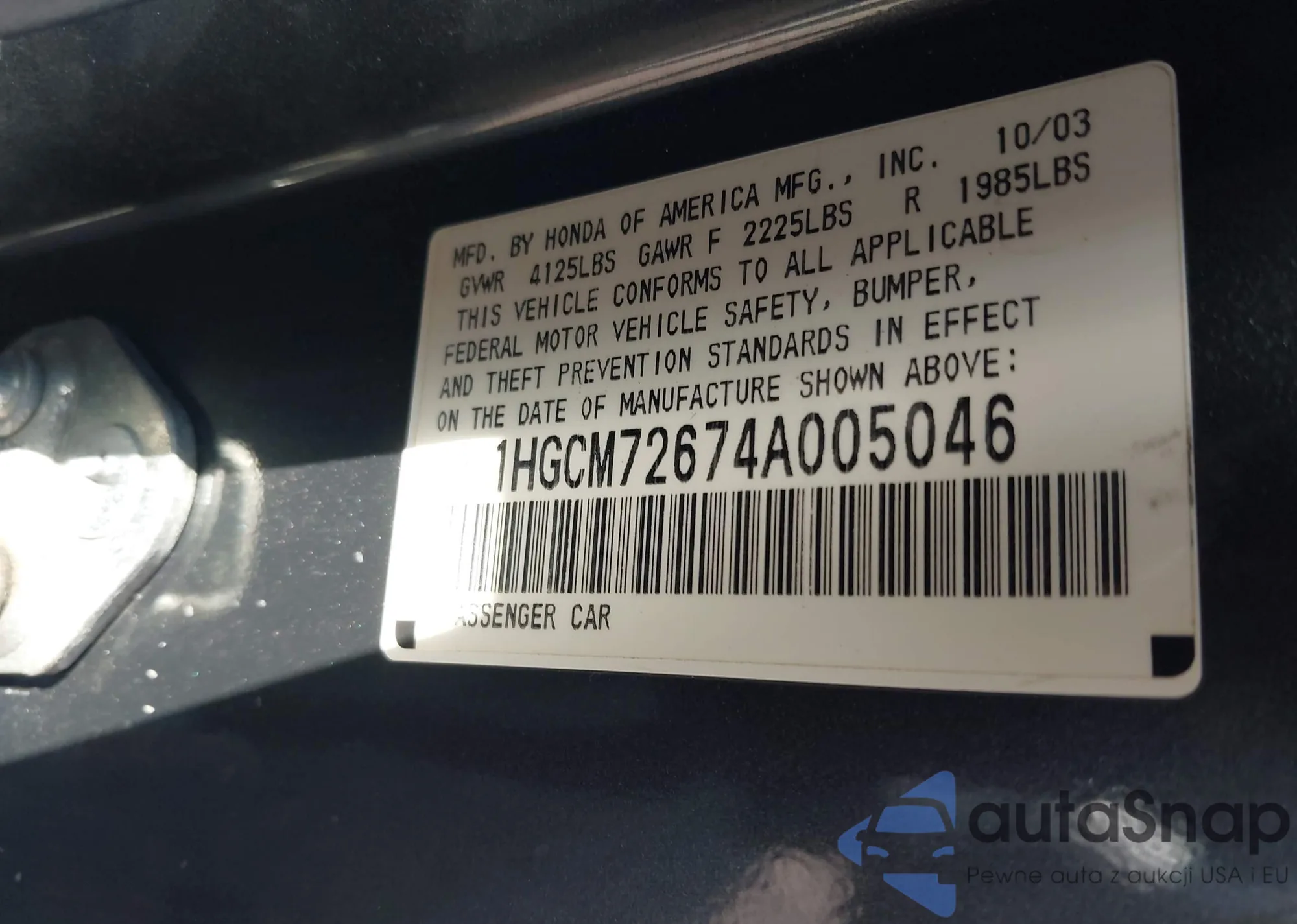 • VIN: 1HGCM72674A005046