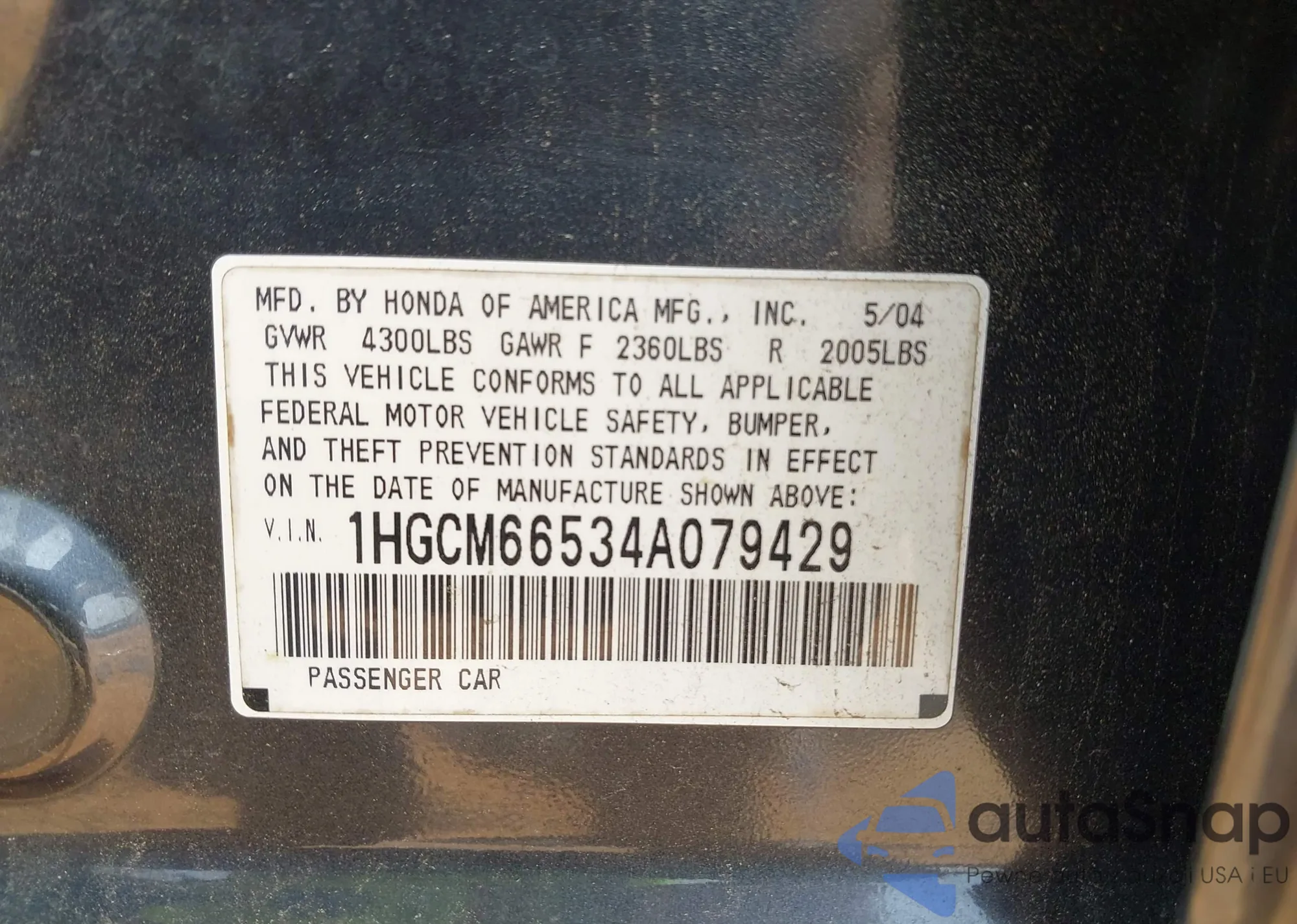 VIN: 1HGCM66534A079429
