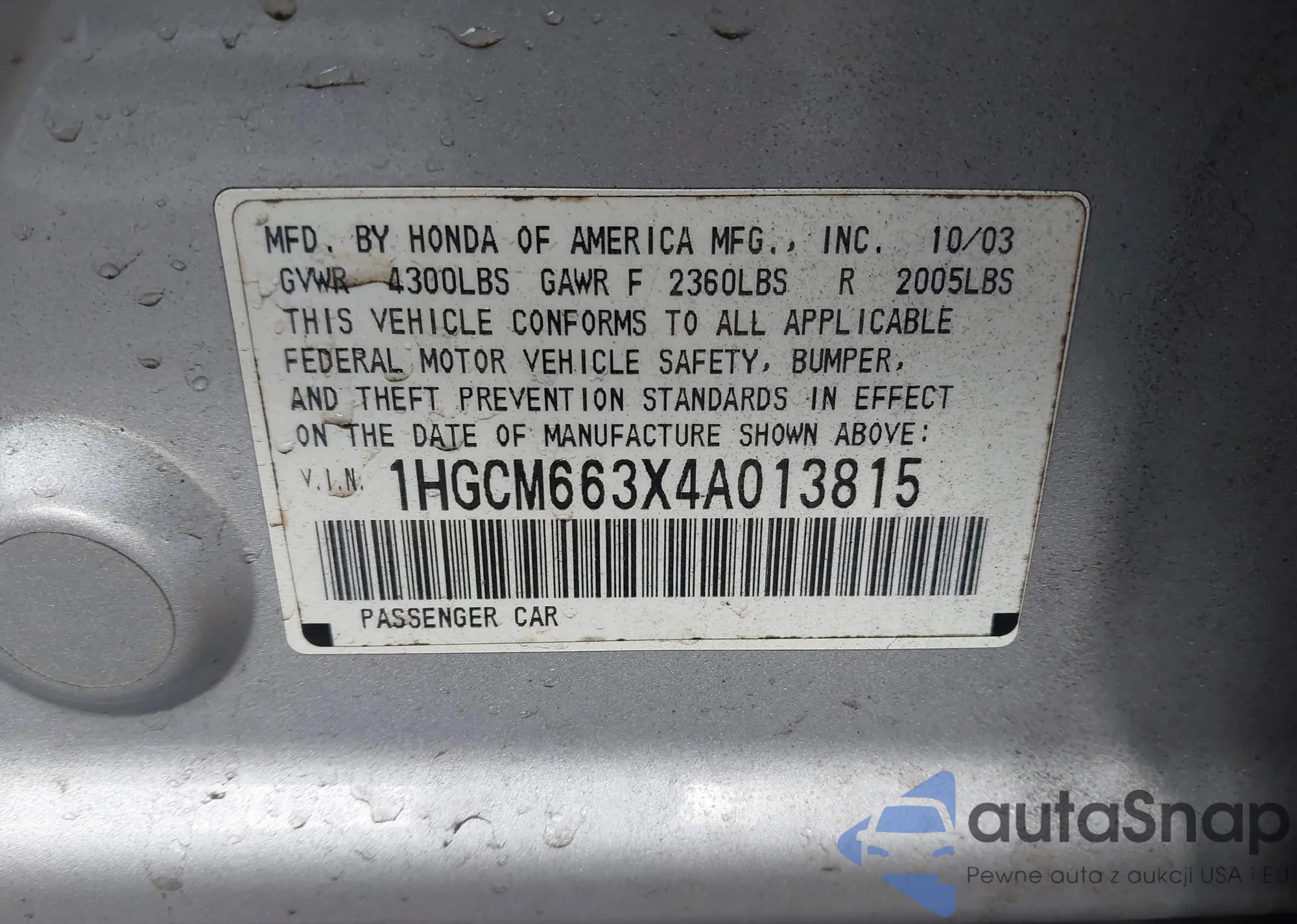• VIN: 1HGCM663X4A013815