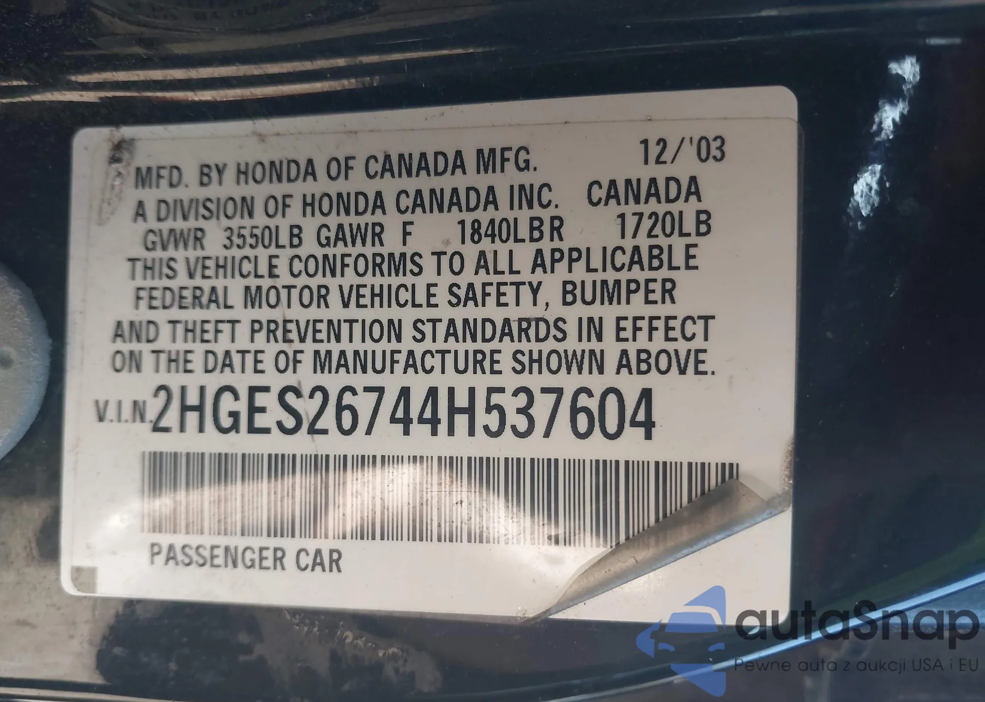 VIN: 2HGES26744H537604