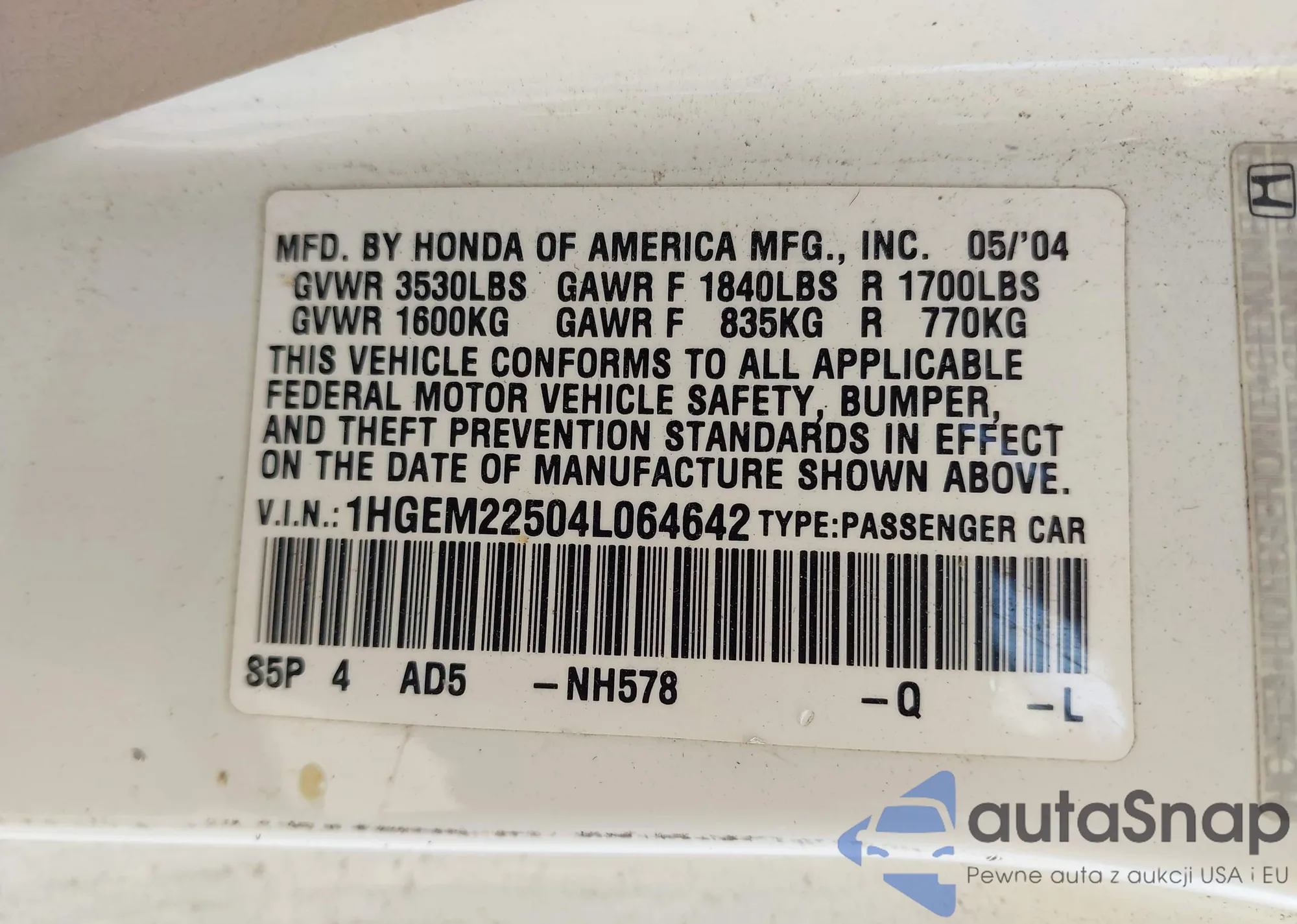 VIN: 1HGEM22504L064642