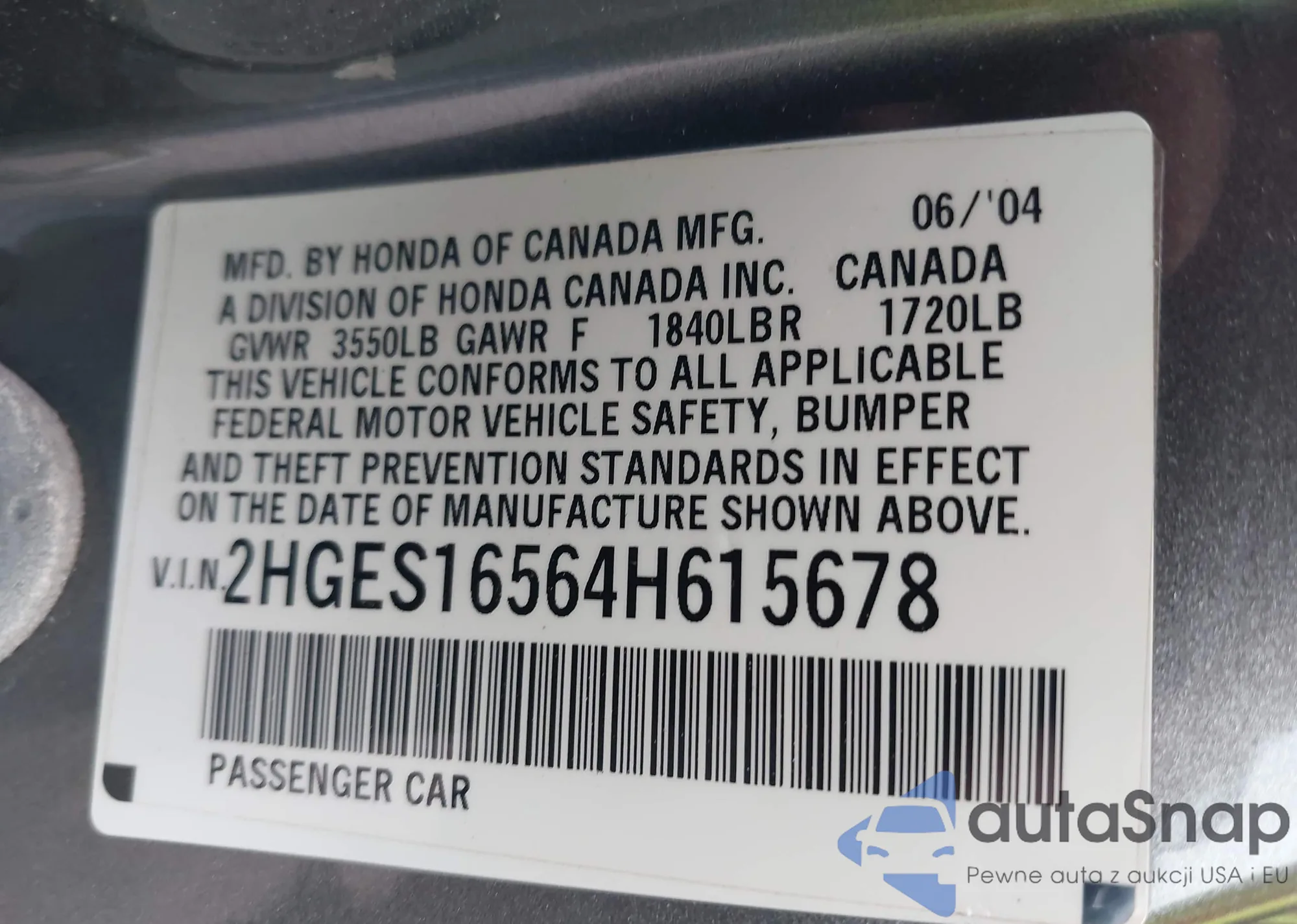 VIN: 2HGES16564H615678