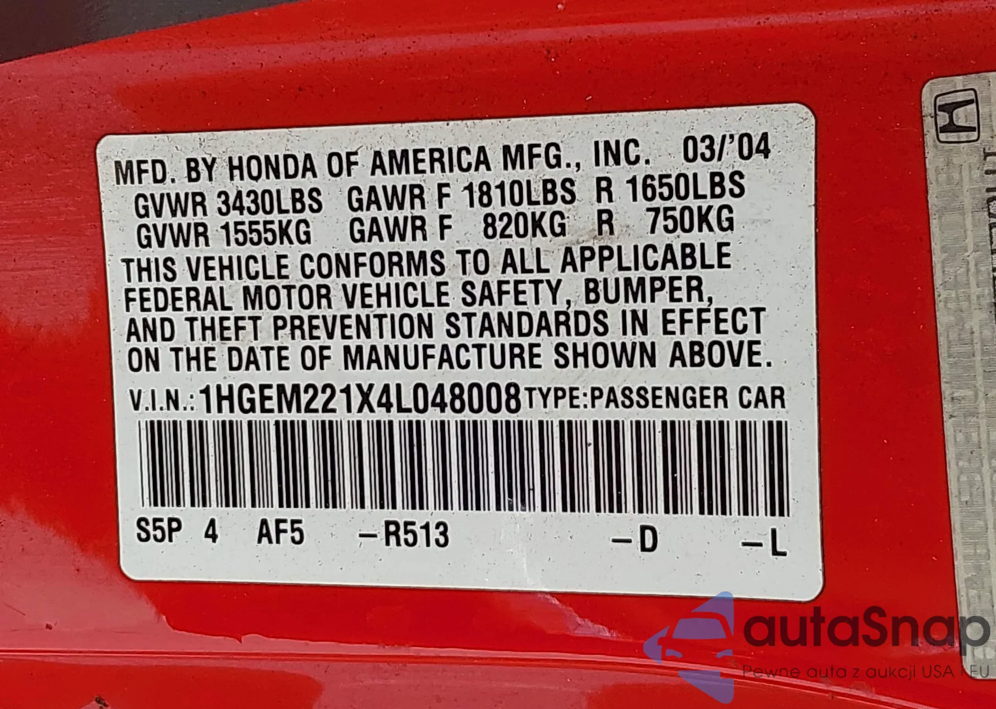VIN: 1HGEM221X4L048008