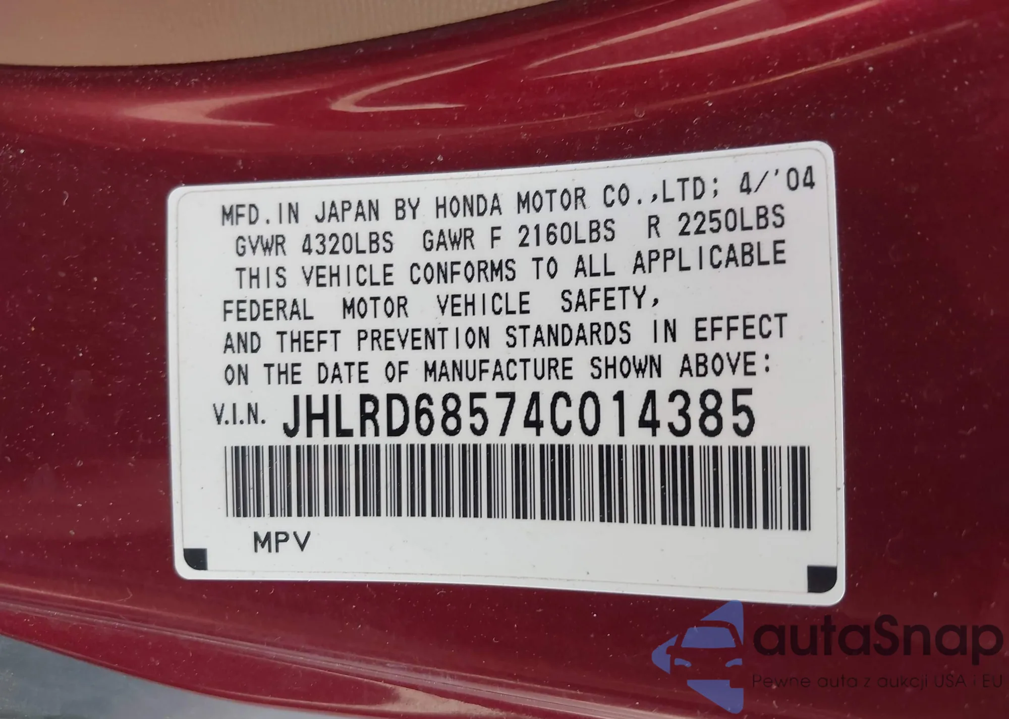 VIN: JHLRD68574C014385