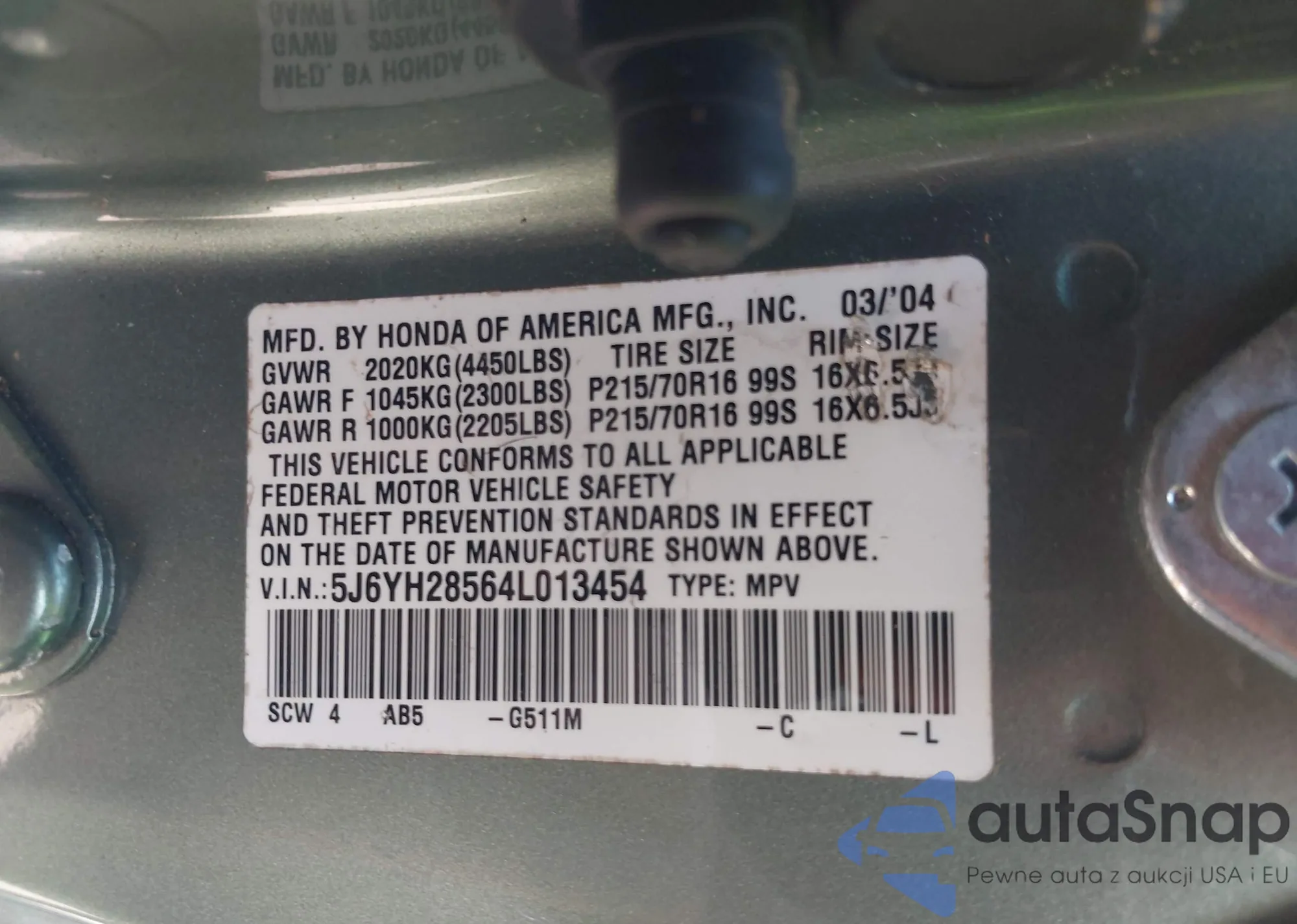 VIN: 5J6YH28564L013454