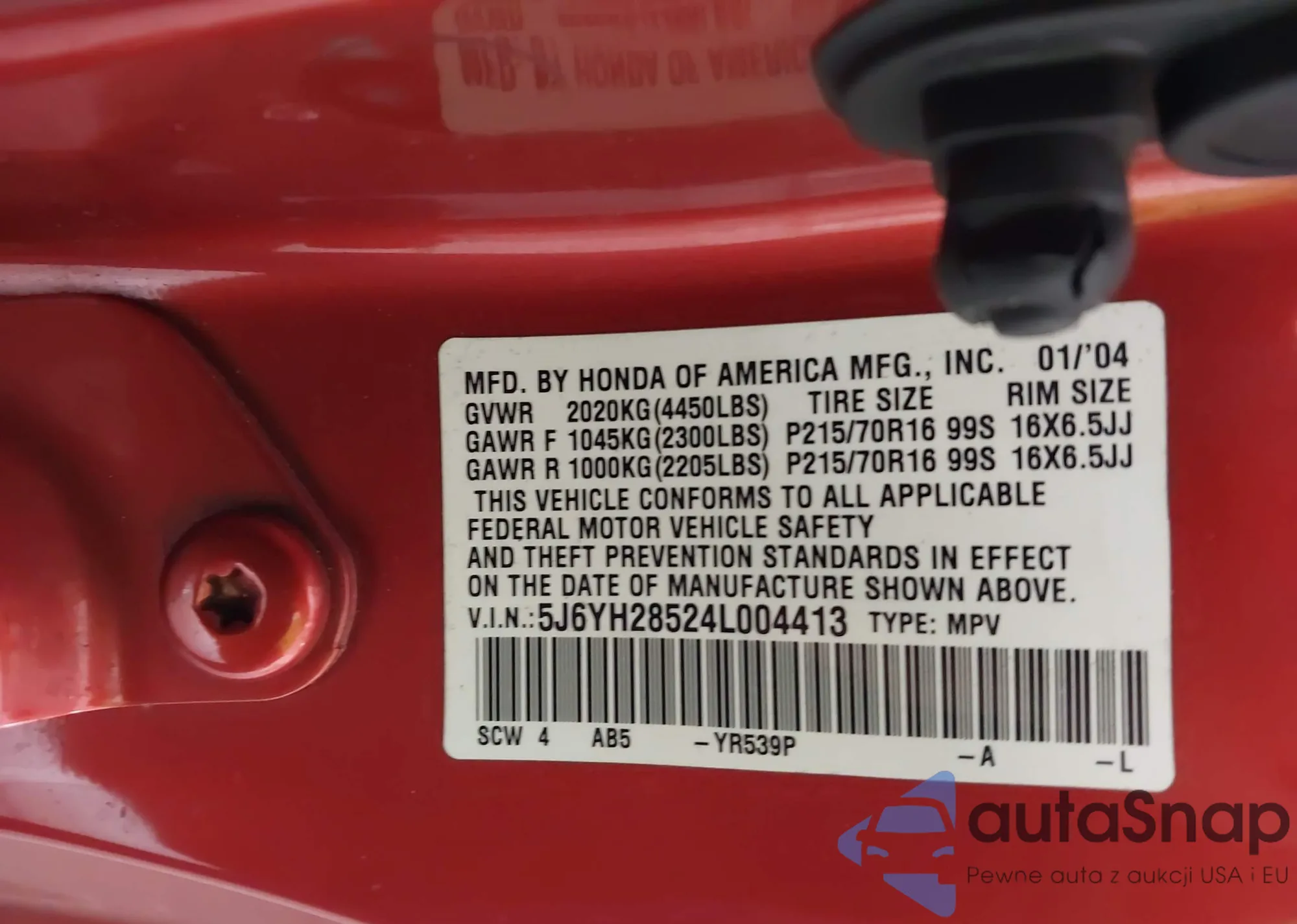 VIN: 5J6YH28524L004413