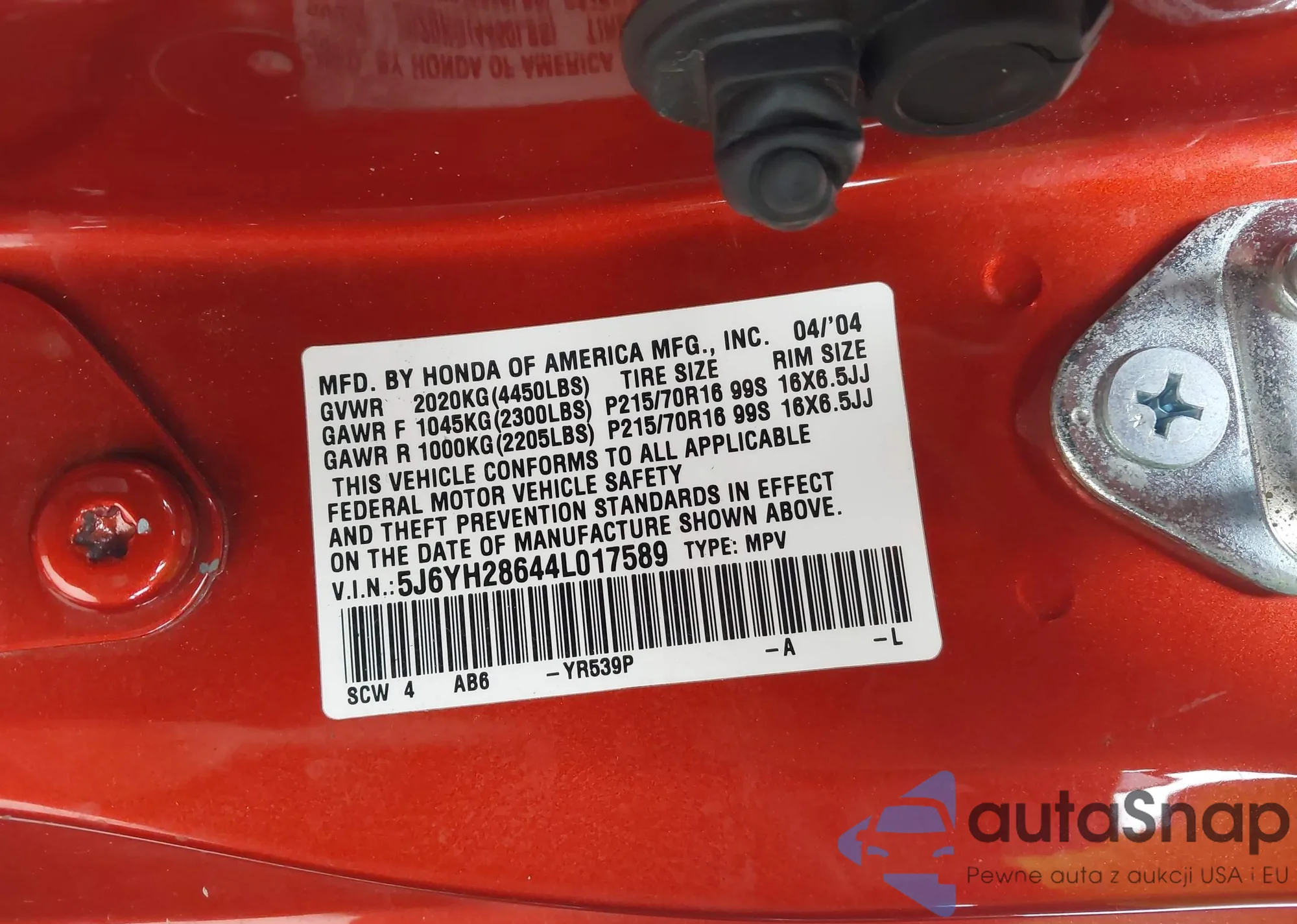 The car Honda Element 2004 (VIN 5J6YH28644L017589) has not been auctioned before. The documents are clean, and the mileage matches or is below the market average. Sold by an insurance company – we recommend purchase. Delivery to the port will take approx. 6–8 weeks.