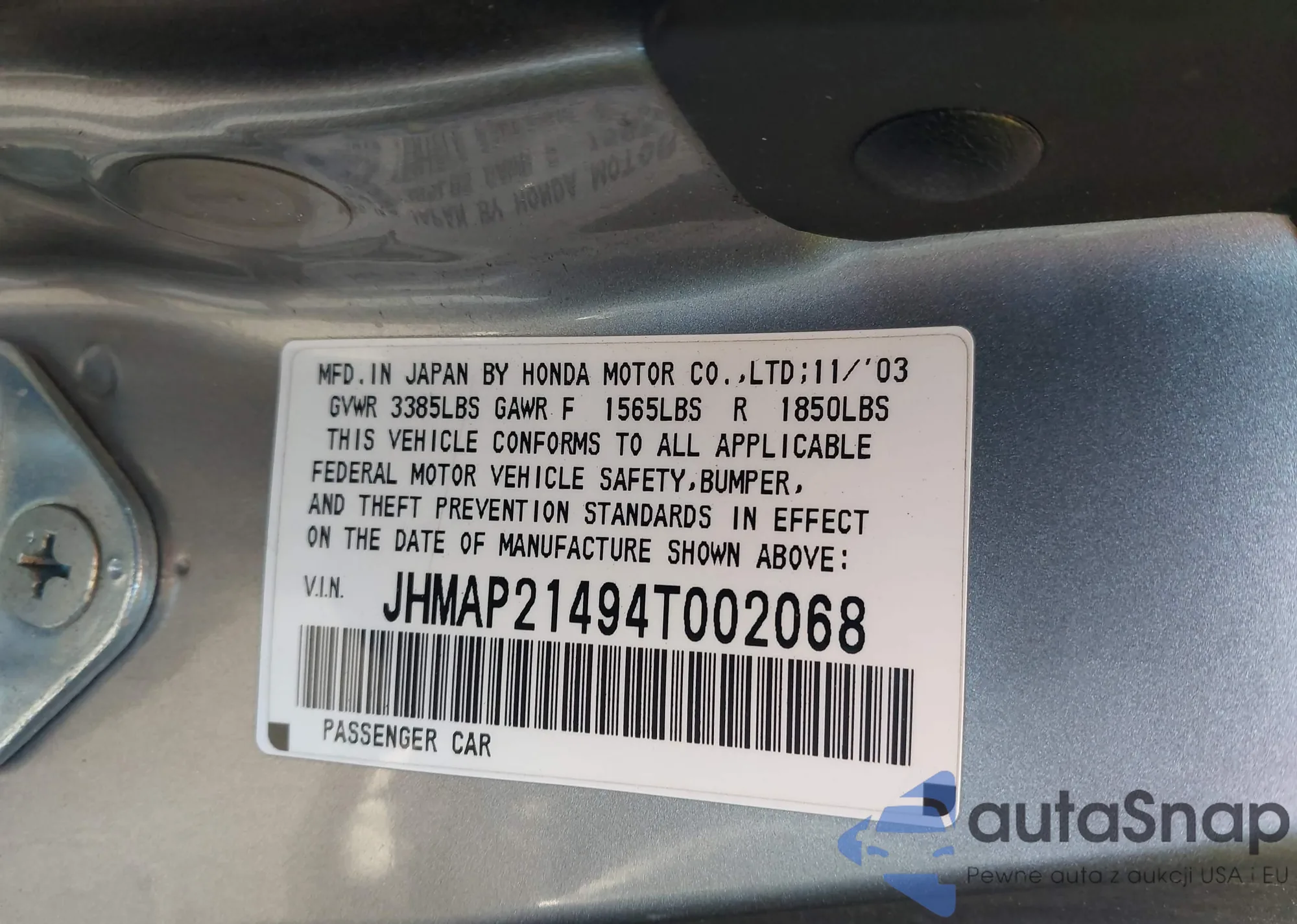 The car Honda S2000 2004 (VIN JHMAP21494T002068) has not been auctioned before. The documents are clean, and the mileage matches or is below the market average. Sold by an insurance company – we recommend purchase. Delivery to the port will take approx. 6–8 weeks.