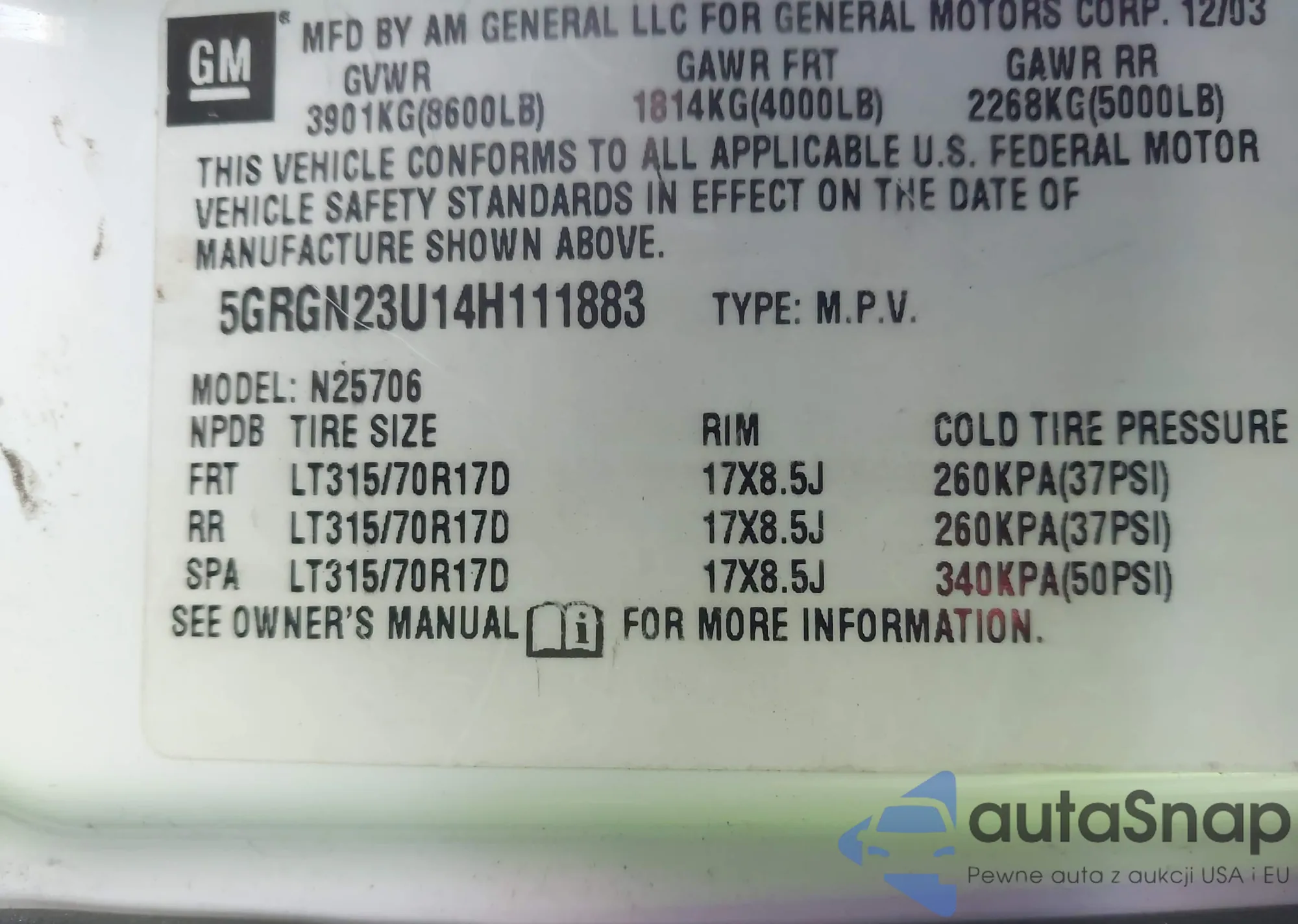 VIN: 5GRGN23U14H111883