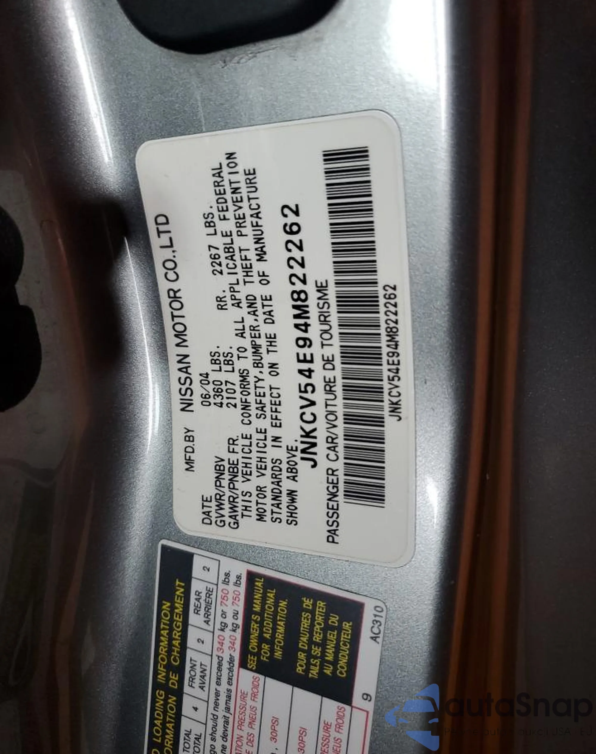 VIN: JNKCV54E94M822262