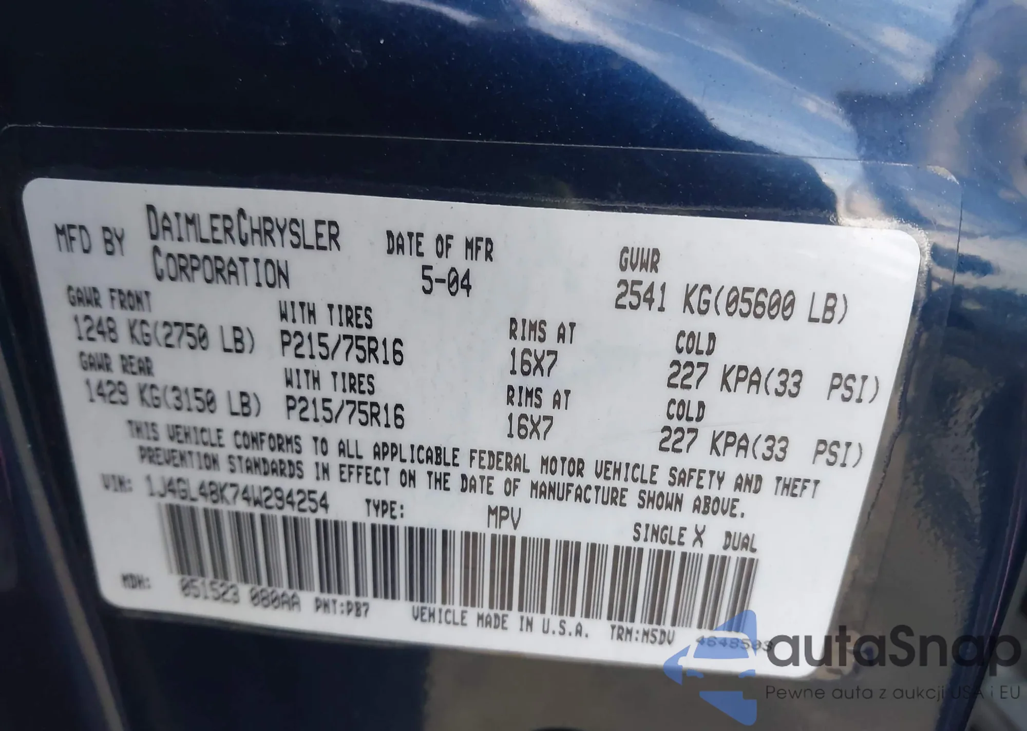 VIN: 1J4GL48K74W294254