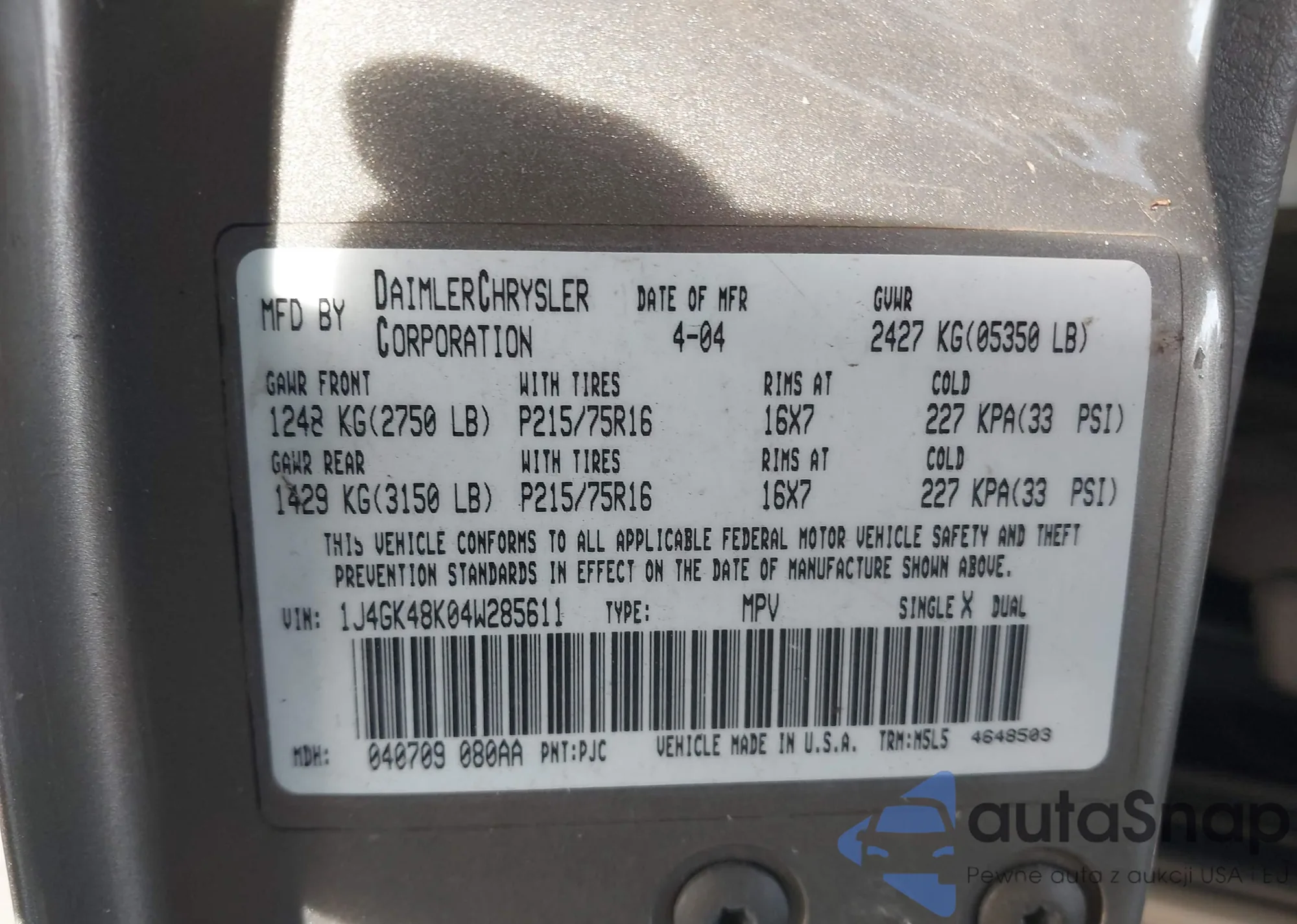 VIN: 1J4GK48K04W285611