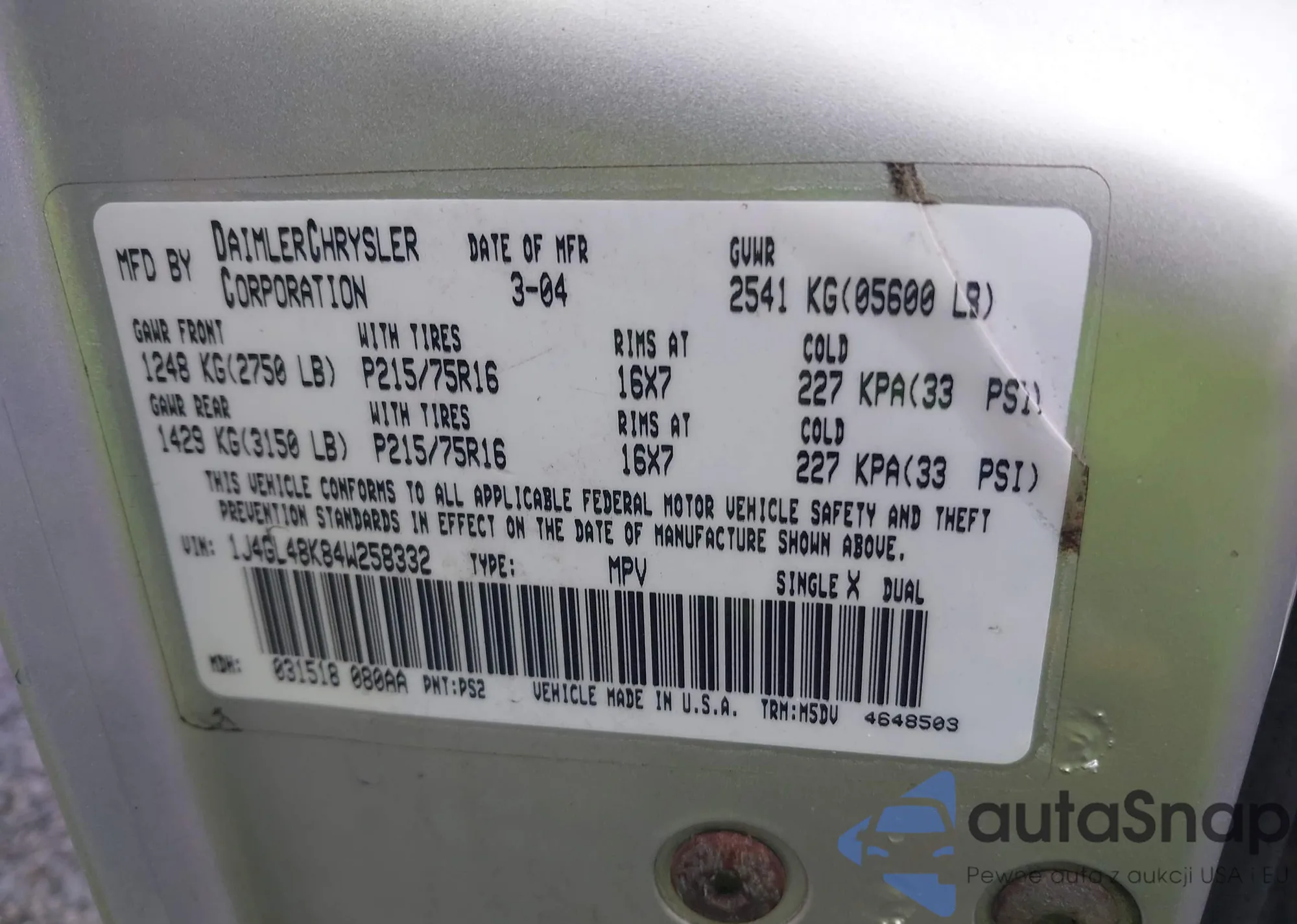 VIN: 1J4GL48K84W258332