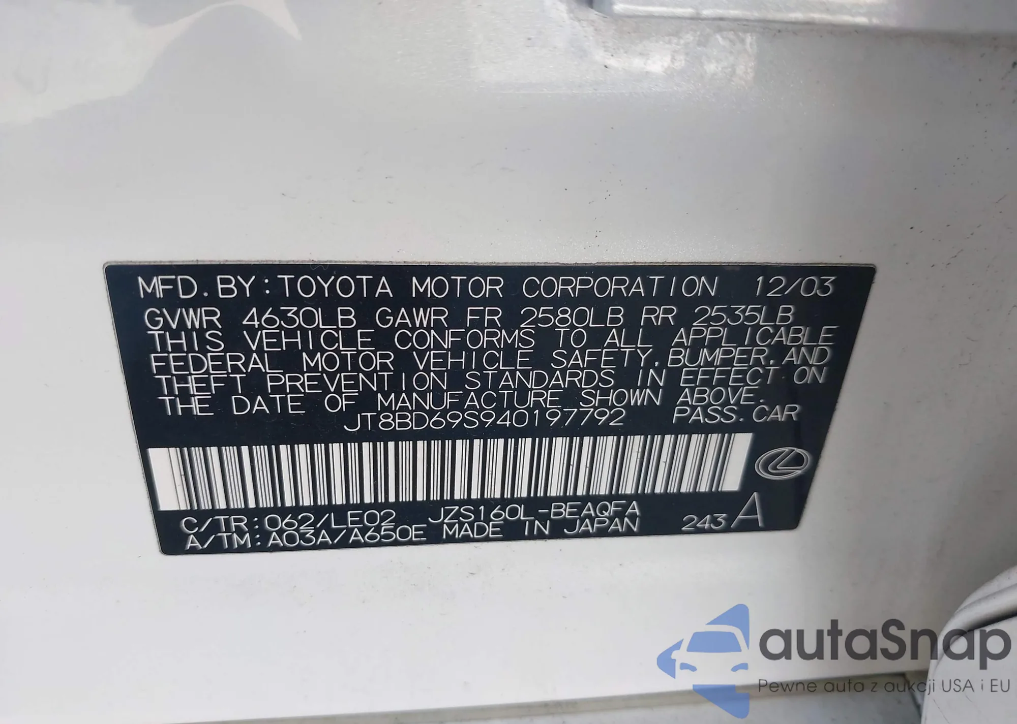 VIN: JT8BD69S940197792