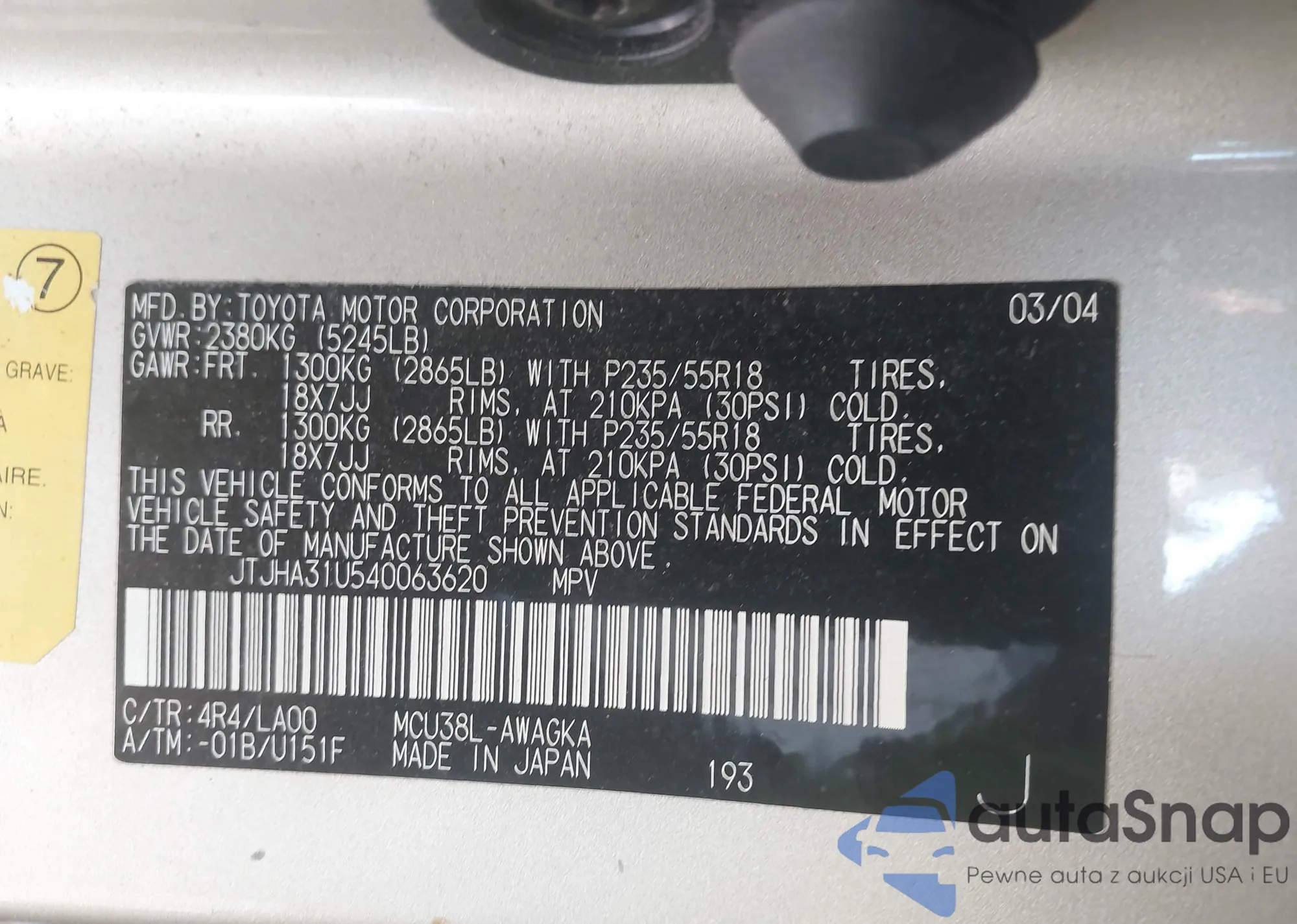 • VIN: JTJHA31U540063620