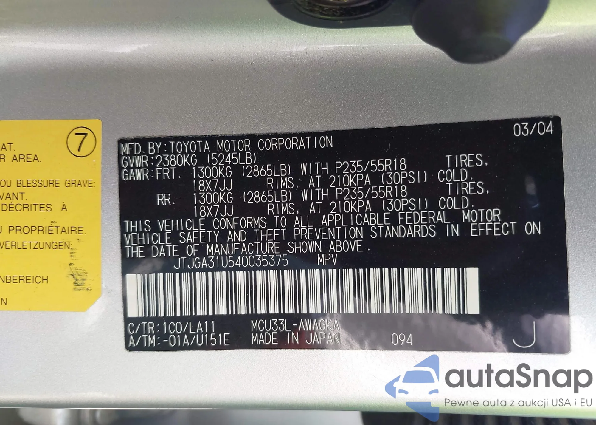 VIN: JTJGA31U540035375