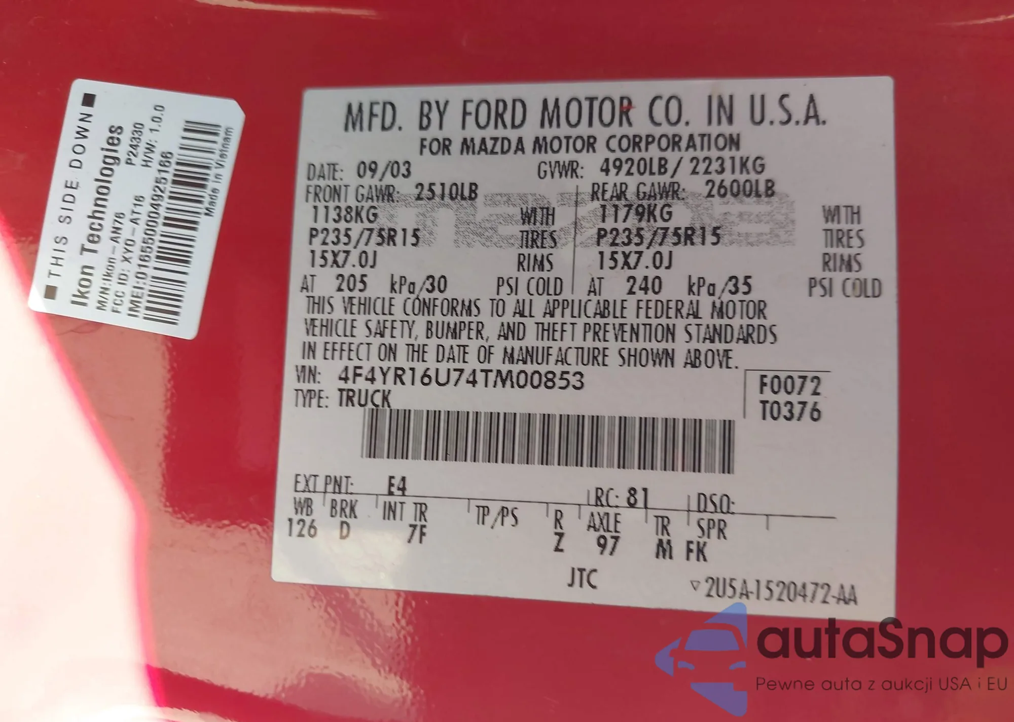 VIN: 4F4YR16U74TM00853