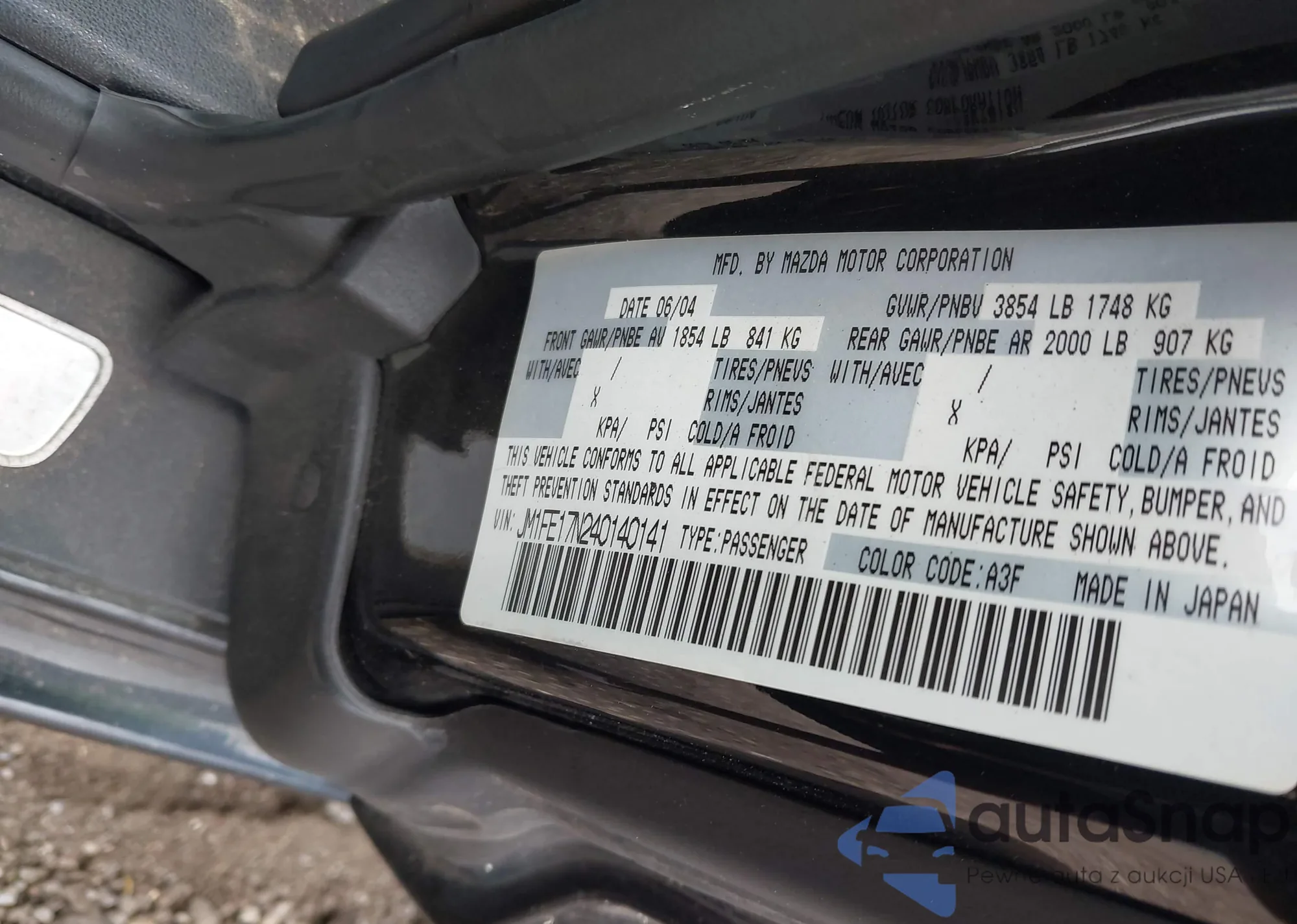 The car Mazda RX-8 2004 (VIN JM1FE17N240140141) has documents that prevent registration. Export and registration may be difficult. Contact AutaSnap experts to find alternatives.