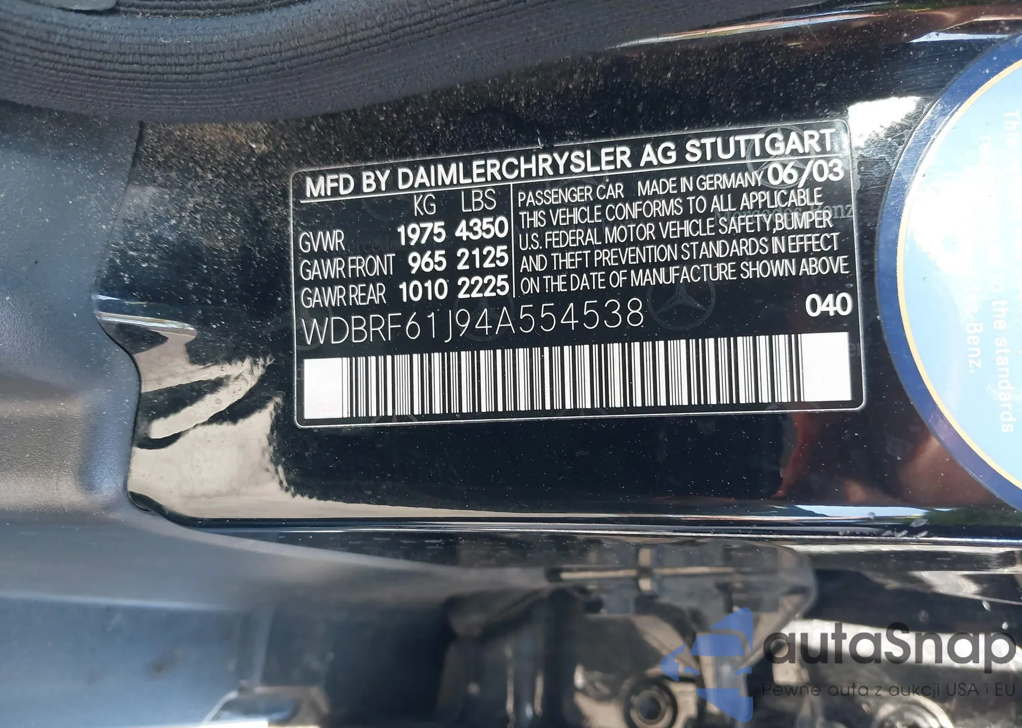 • VIN: WDBRF61J94A554538
