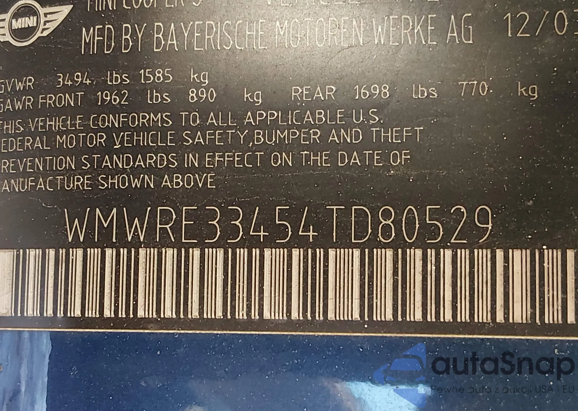 • VIN: WMWRE33454TD80529