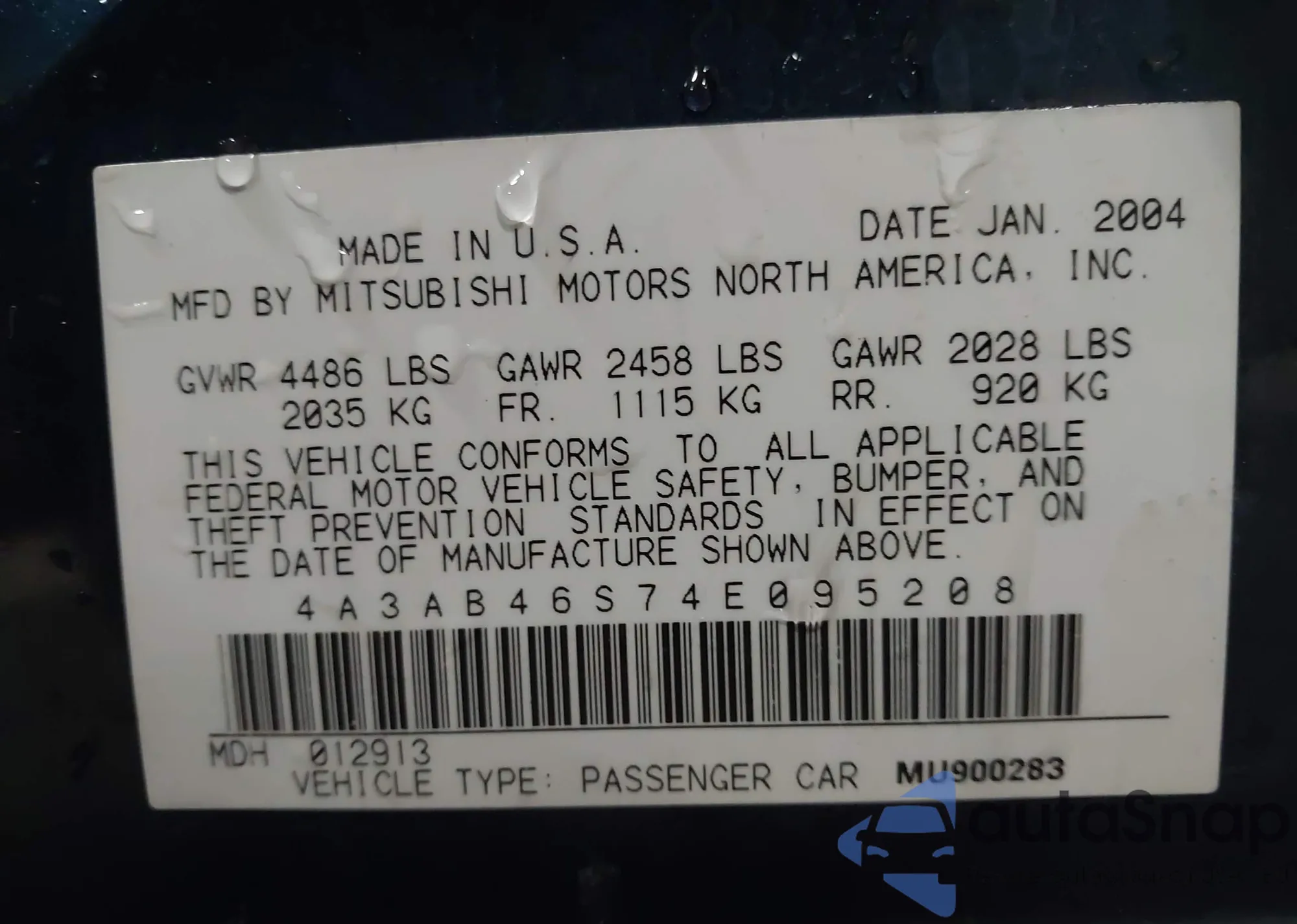 • VIN: 4A3AB46S74E095208