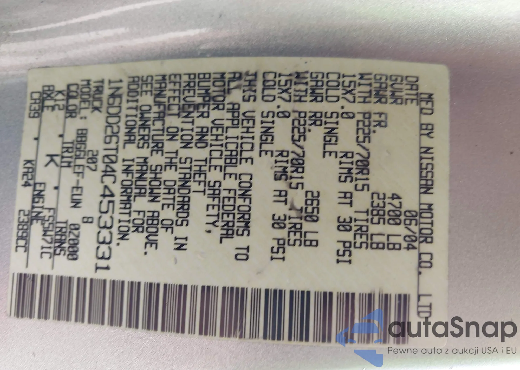 Nissan Navara (Frontier) 2004 – Vehicle History (Sold at IAAI)