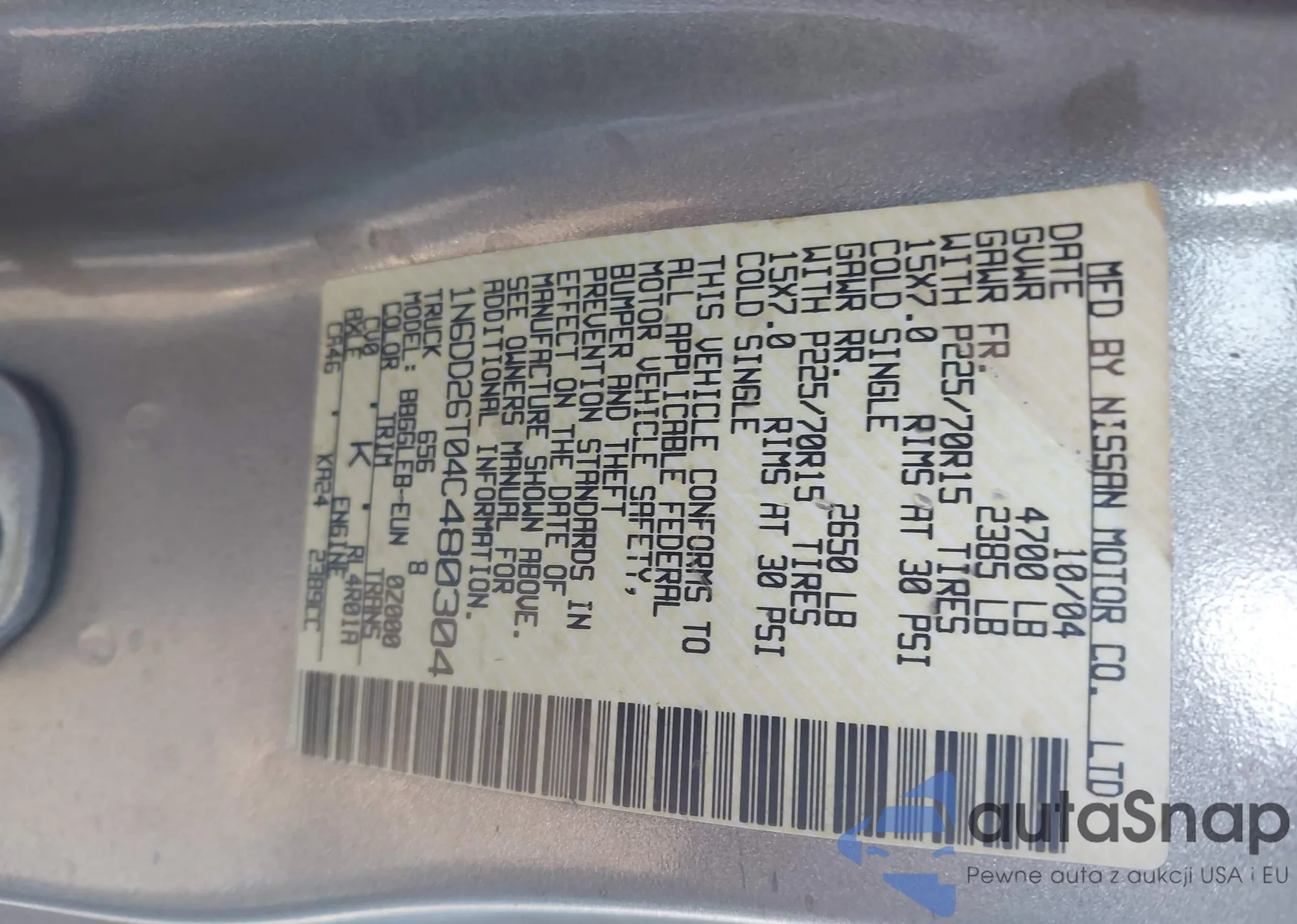 • VIN: 1N6DD26T04C480304