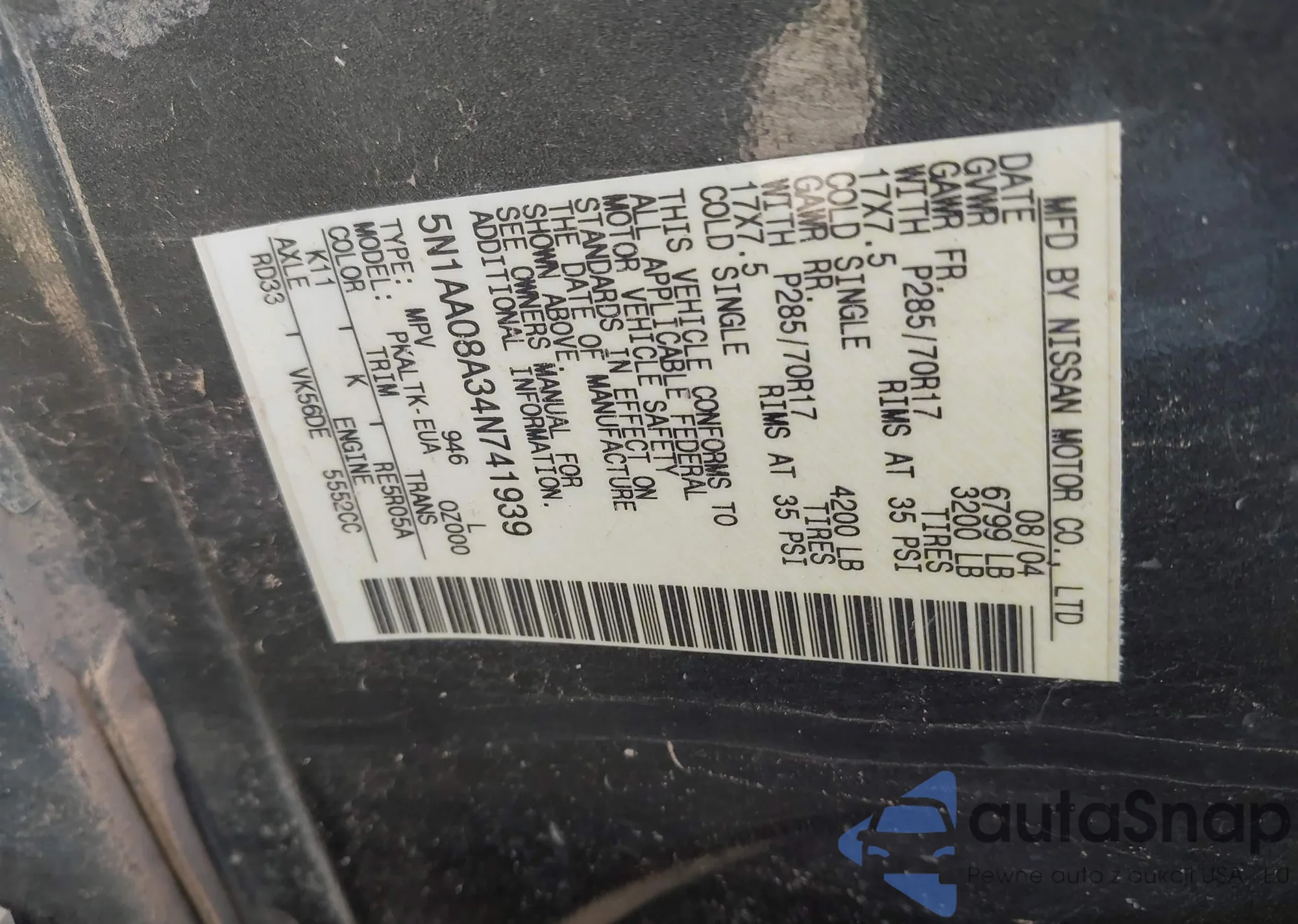VIN: 5N1AA08A34N741939