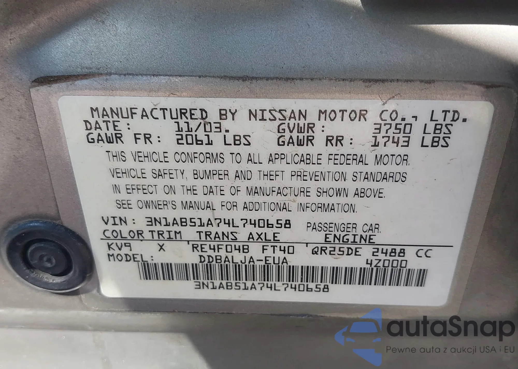 VIN: 3N1AB51A74L740658