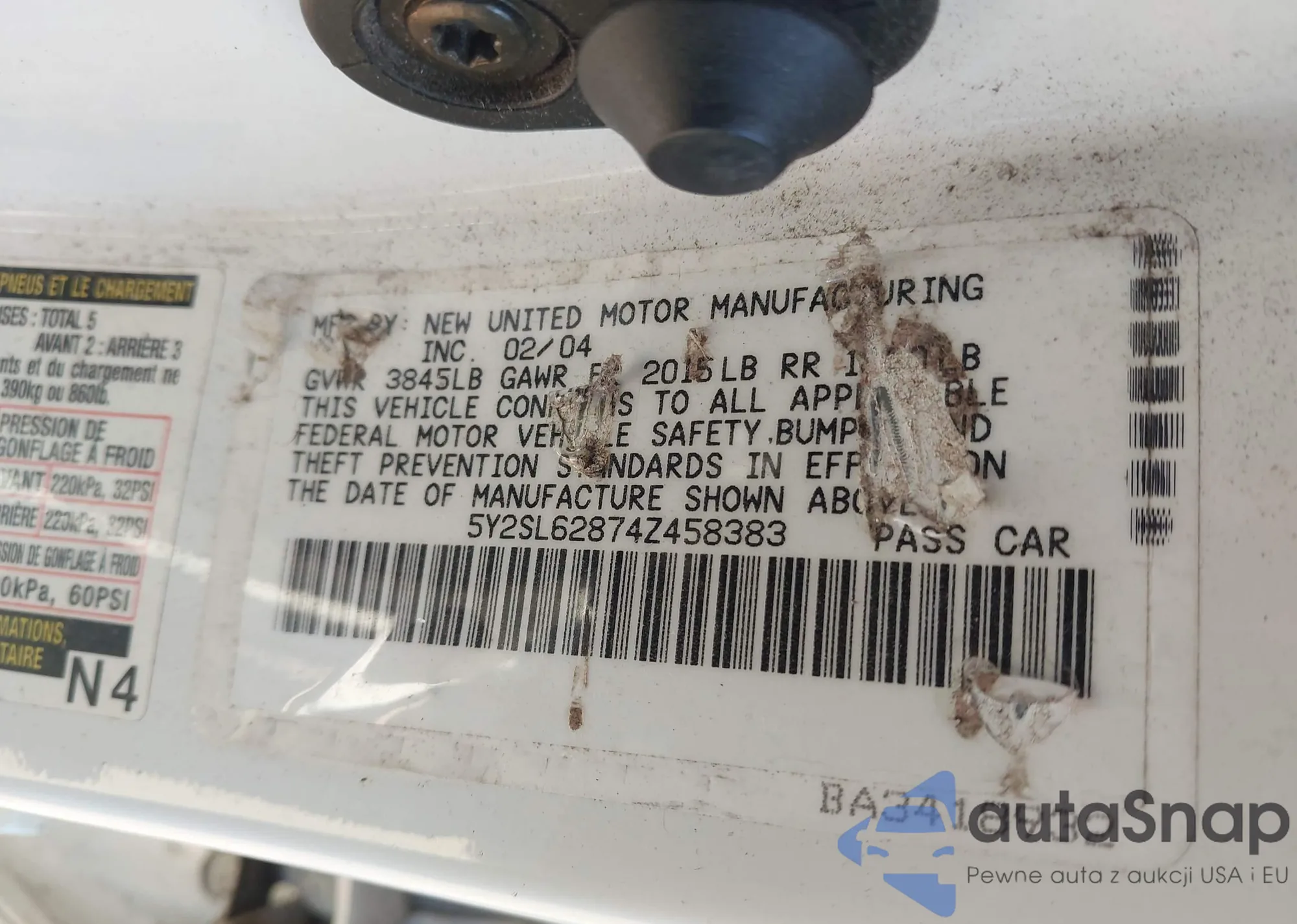 • VIN: 5Y2SL62874Z458383