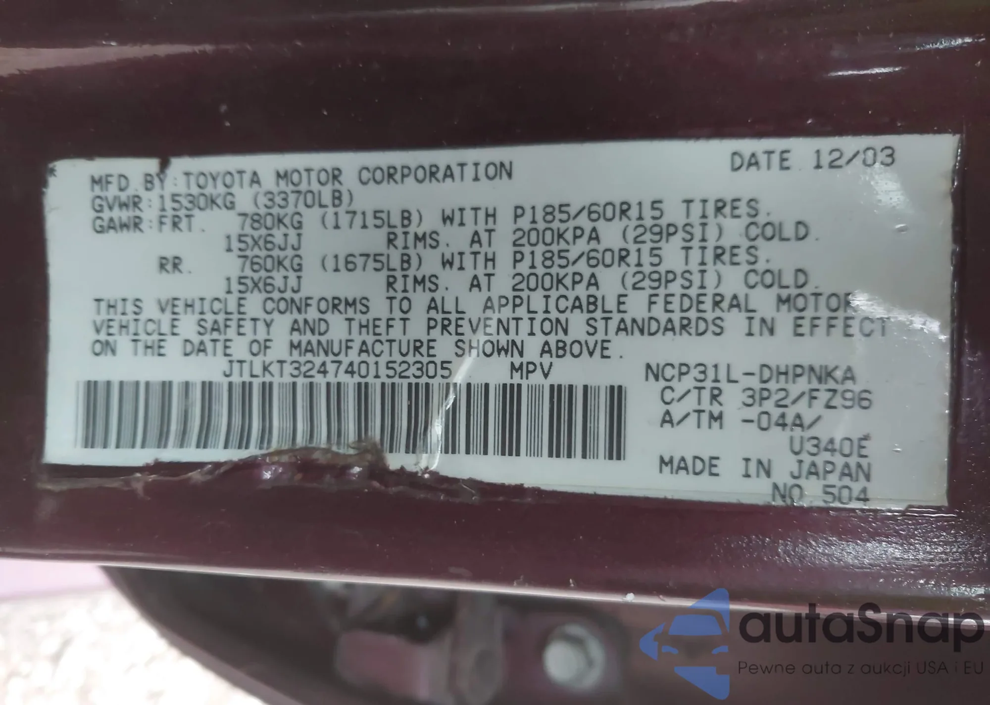 Year of manufacture: 2004