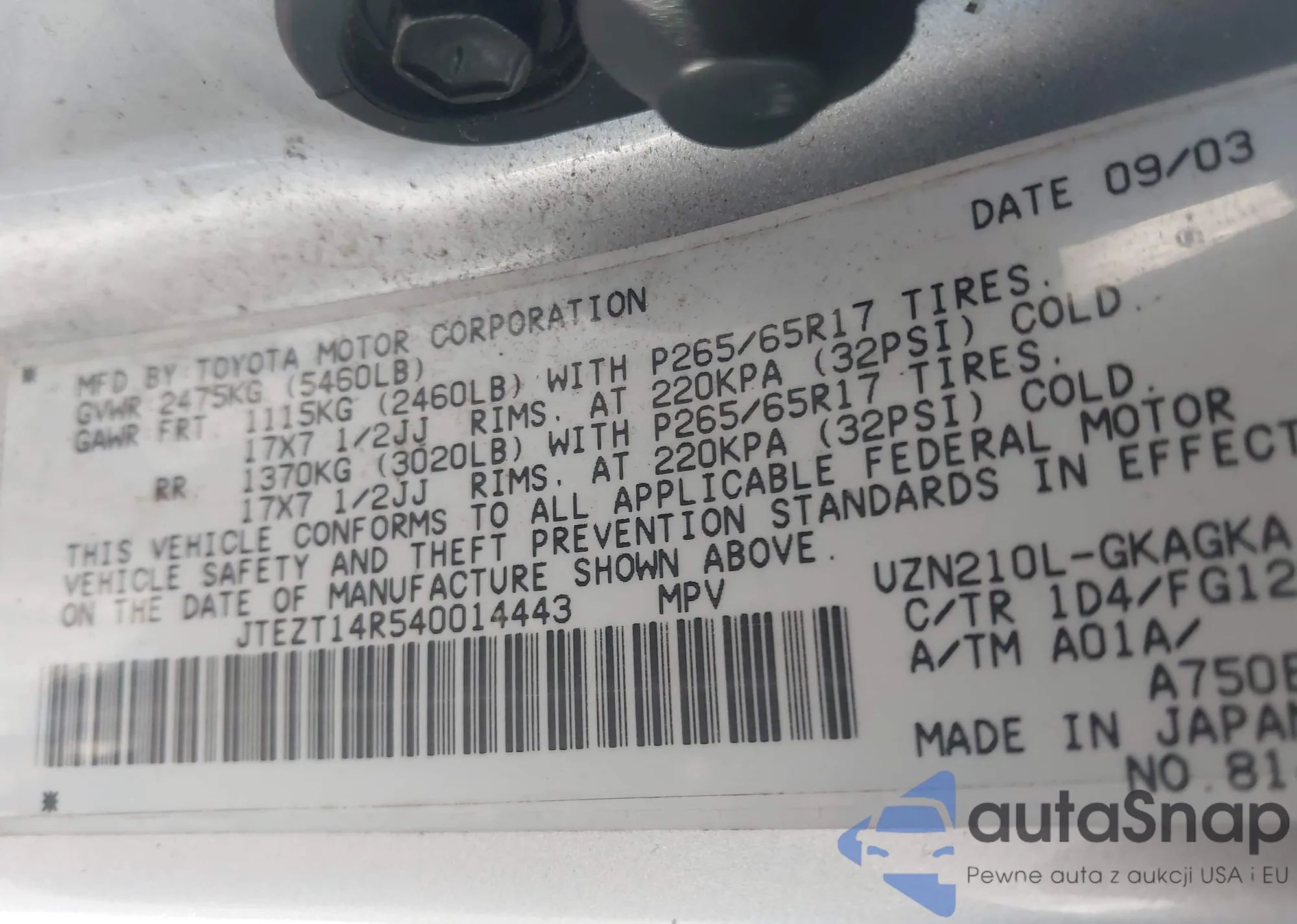 VIN: JTEZT14R540014443